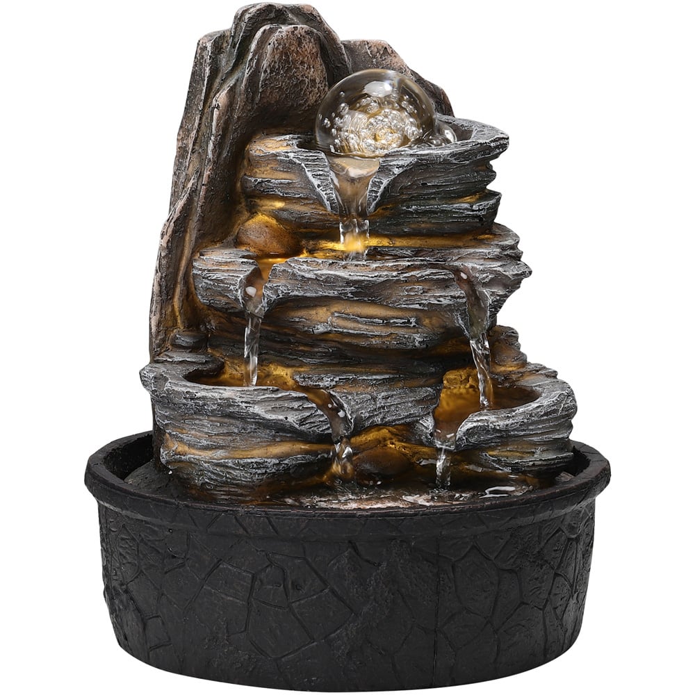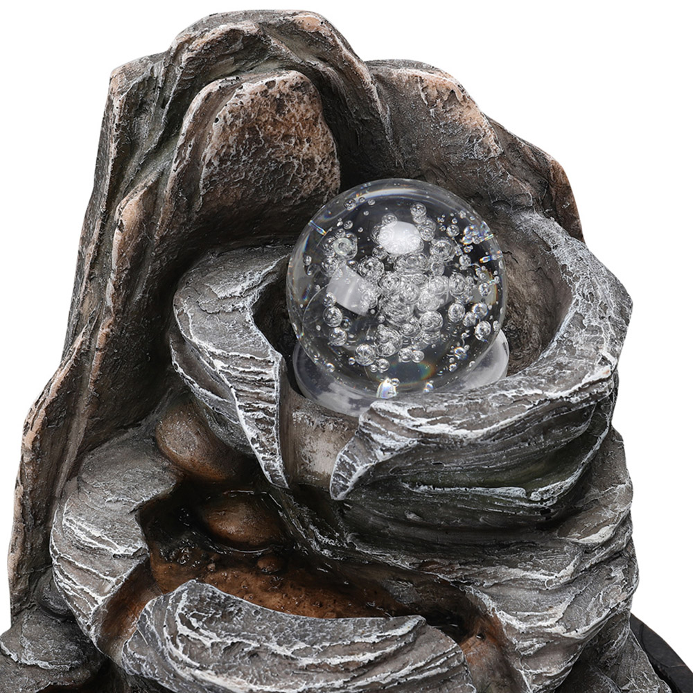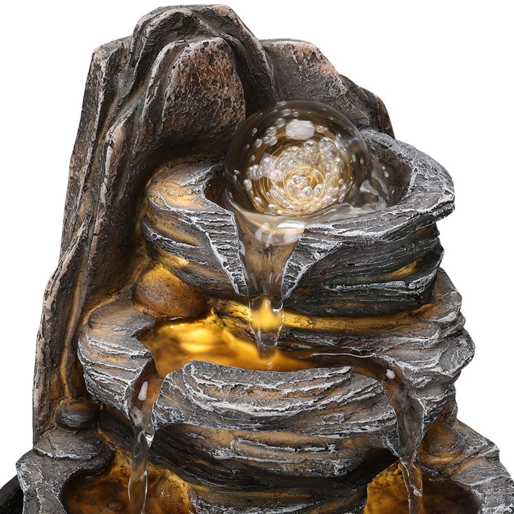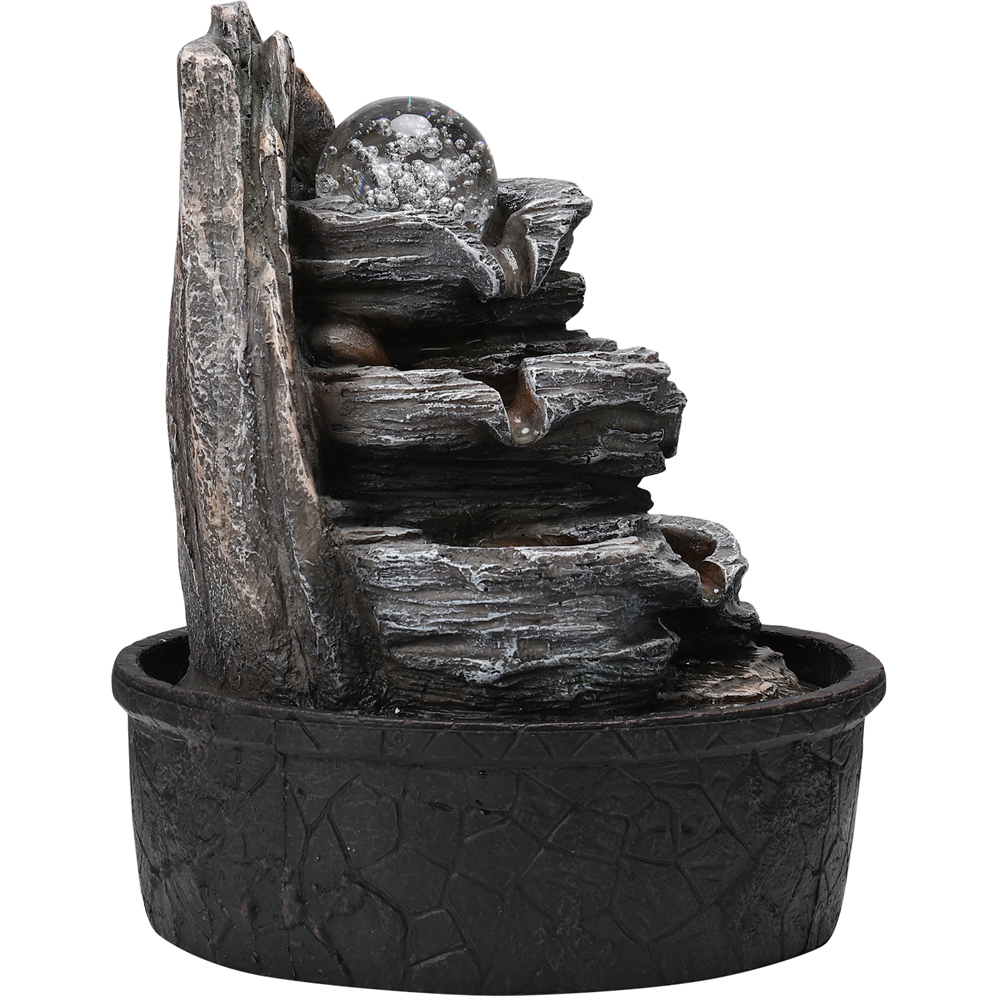 Living and Home Multi Tier Black Rock Fountain with LED Crystal Ball