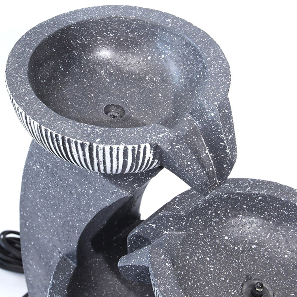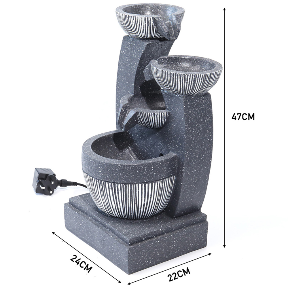 Escape everyday monotony with the Living and Home Multi Tier Rock Fountain. This beautiful piece seamlessly blends style, relaxation, and practicality, making it the perfect addition to any space. Crafted from resilient plastic and resin, this fountain is built to last. The gentle sound of flowing water creates a calming atmosphere, helping you unwind and destress. The captivating display illuminates at night with a simple plug-in. The flowing water acts as a natural humidifier, improving air quality.