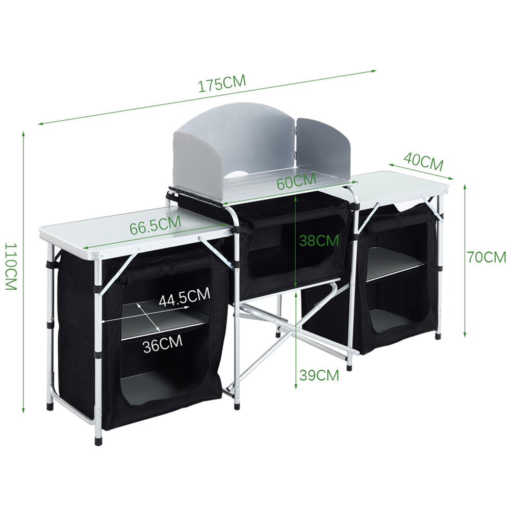 Create your perfect outdoor cooking space anywhere with the Portable Camping Kitchen Stand. Its robust aluminium frame provides a stable base for all your culinary needs, while the hard-wearing MDF tabletop offers a reliable work surface. Designed with safety in mind, it features child-safe rounded corners and anti-slip feet for secure placement. A handy built-in zippered compartment keeps all your essentials neatly organised. Plus, it folds away compactly for effortless storage and transportation.