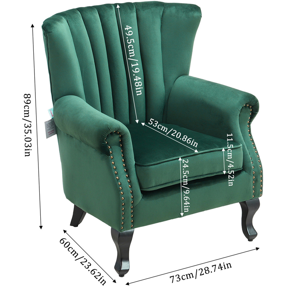 Add a touch of chic elegance to your space with this sleek and stylish velvet armchair, perfect for dressing up your living area. The armchair brings understated luxury to your room, with its channel-tufted back and studded sides radiating sophistication. Upholstered in ultra-soft velvet fabric, the densely filled seat ensures optimal comfort, allowing you to relax in style. No matter how long you spend in it, you'll always rest in the cosiest way possible.