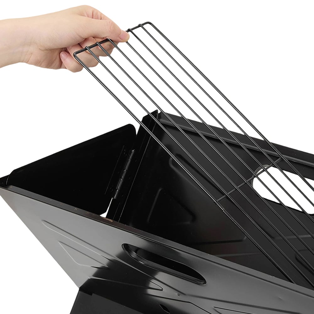 Get perfect BBQ results every time with this Living and Home X Frame Portable Folding Charcoal BBQ Grill. Its extra-large cooking surface lets you grill more food at once, while even heat distribution ensures everything cooks just right, with no burning, and no cold spots. Smartly placed air vents help the fire burn hotter and faster, giving you better control over your cooking. Built for durability, it features a stainless steel charcoal tray that extends the grill’s life and side vents that enhance airflow. The powder-coated finish resists rust and scratches, keeping it looking great use after use. Safety is built in too, with smooth, curved edges to prevent cuts or scrapes during setup and grilling. The sturdy legs provide stability and double as convenient carrying handles. They fold or detach easily, making the grill compact, lightweight, and perfect for camping trips, beach picnics, or backyard cookouts.