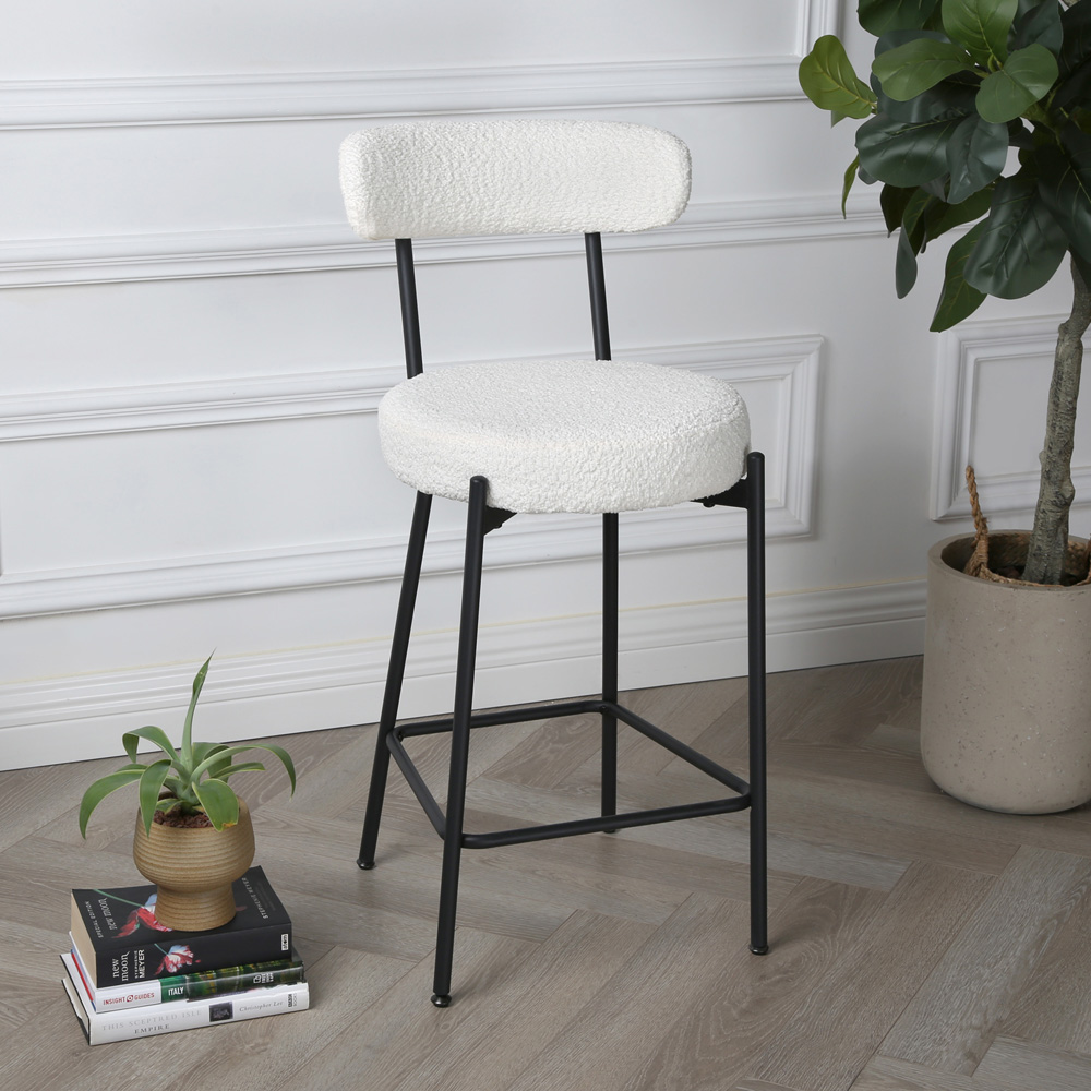 Indulge in the luxurious comfort and timeless elegance of the Home Garden Direct Long Lulu Cream Boucle Bar Stool Set of 2. Crafted with plush teddy fabric, this pair of bar stools effortlessly elevates any space with their sophisticated, vintage-inspired design. The taller height and sleek backrest provide both style and exceptional comfort, adding a fresh and stylish twist to your home. Perfect for adding unique flair.