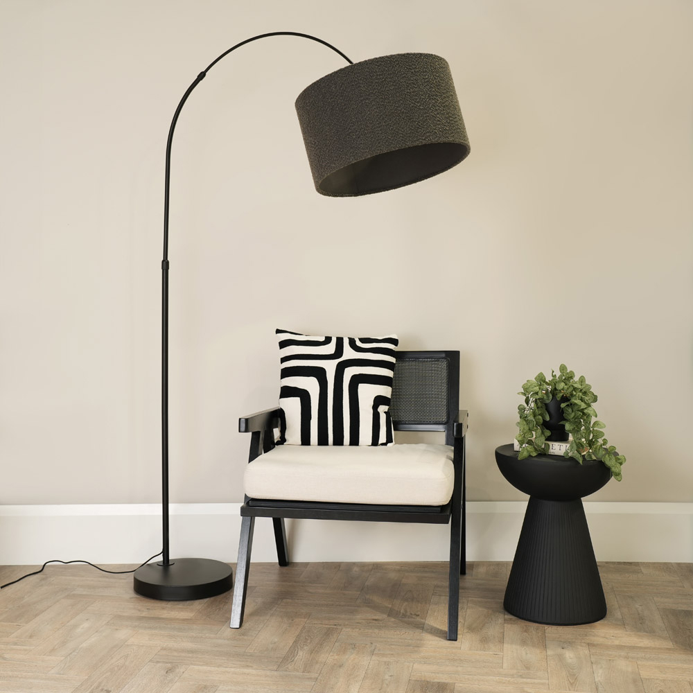 ValueLights Louis Charcoal Boucle Drum Shade Black Curved LED Floor Lamp