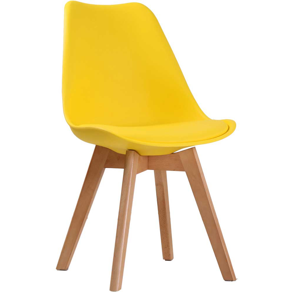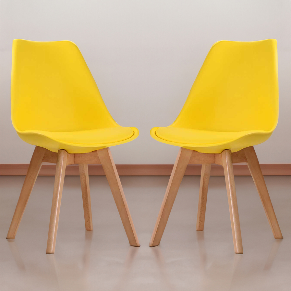 Bring a touch of contemporary Scandi style to your dining space with this pair of vibrant yellow Louvre chairs. Perfect for dining, desks, or vanities, their moulded yellow backs offer excellent support, complemented by comfortably padded seats. The elegant design is completed by sleek beech wood legs, creating a stylish and versatile addition to any room. Sold as a pair, these chairs offer both comfort and style.