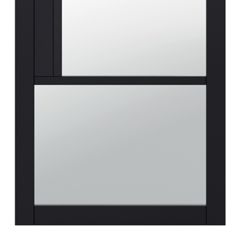 Enhance your home's style with this elegant black internal door (1981 x 686mm). Its sleek, slender black beading and decorative lock block add a touch of sophistication, while four clear glazed panels maximise natural light. Its modern design complements a variety of interior styles and effortlessly elevates any modern living space.