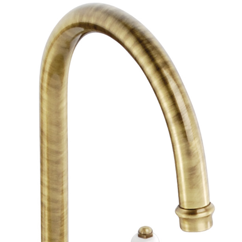 The Ludlow kitchen tap effortlessly blends classic British design with modern functionality. Its Victorian-inspired swan neck and elegant white lever handles create a timeless aesthetic, finished in an exquisite antique bronze. This dual lever mono tap is a statement piece, perfectly complementing both traditional and contemporary kitchens. The high-quality engineering ensures effortless control and lasting performance. Upgrade your kitchen with this stunning and practical addition.