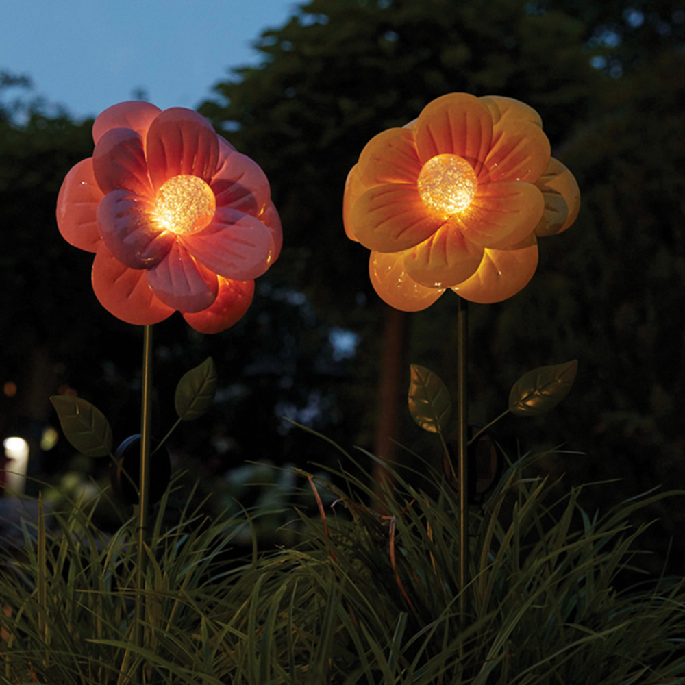 This beautiful artificial flower solar light adds a touch of magic to any garden. Perfect for brightening flowerbeds, borders, or pots, it provides a vibrant splash of colour, especially during the winter. The energy-efficient LED light boasts an IP44 rating and uses a built-in solar panel to charge its AA batteries during the day. Enjoy up to six hours of illumination each night, the light automatically turns on at dusk and off at dawn. Completely wire-free for a clean look, it',s a wonderful gift or a delightful self-indulgence.