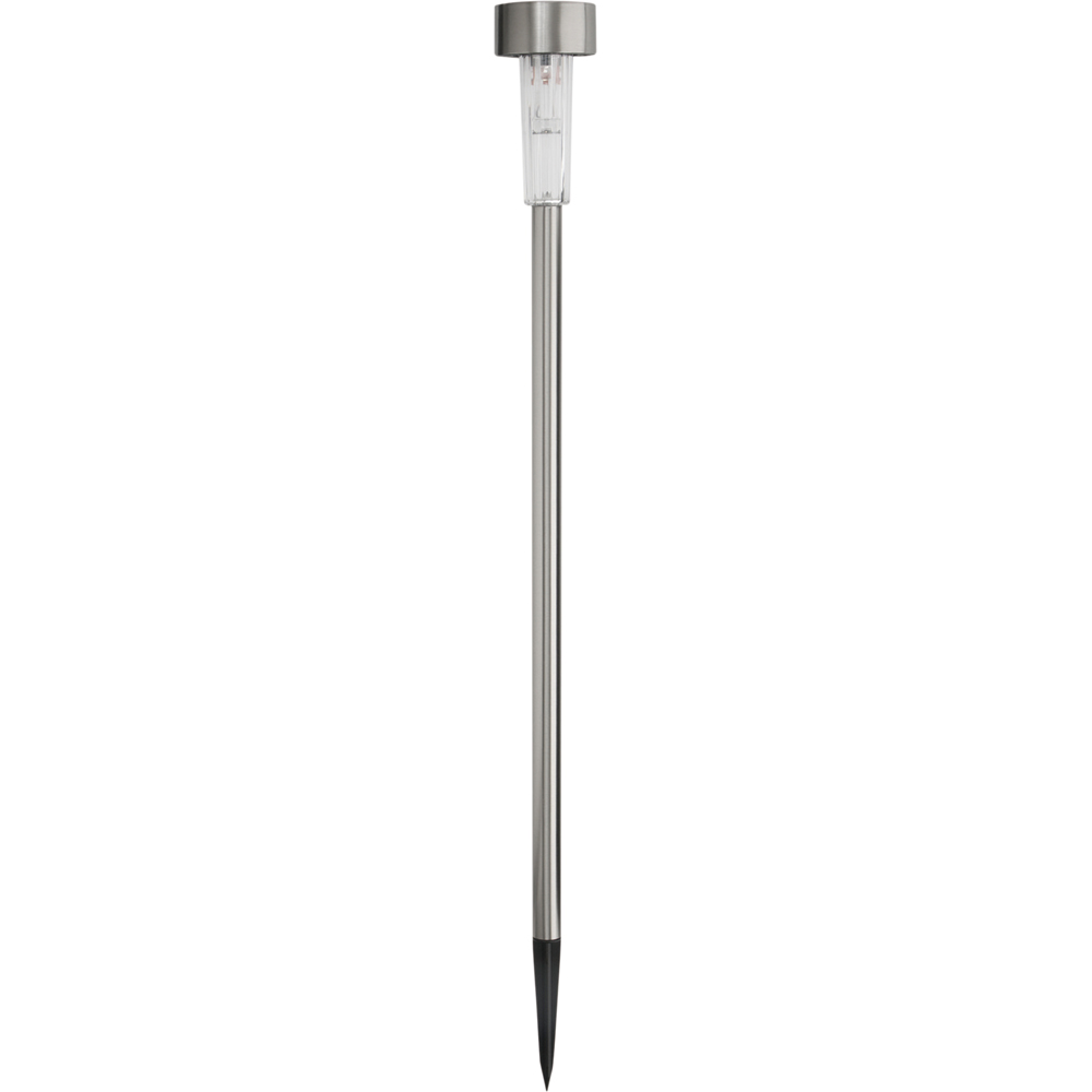 Enhance your outdoor space with this pair of stylish Fuego LED solar garden spike lights. These durable stainless steel lights offer a blend of aesthetics and functionality, perfect for illuminating paths, borders, and driveways. Featuring both warm white and colour-changing RGB LEDs, they create a welcoming ambiance. The integrated solar panel recharges the AA battery throughout the day, providing up to eight hours of light at night – automatically switching on at dusk and off at dawn. Simple to install with no wiring needed, just push the supplied spike into the ground. This energy-saving, IP44-rated set includes 24 lights.