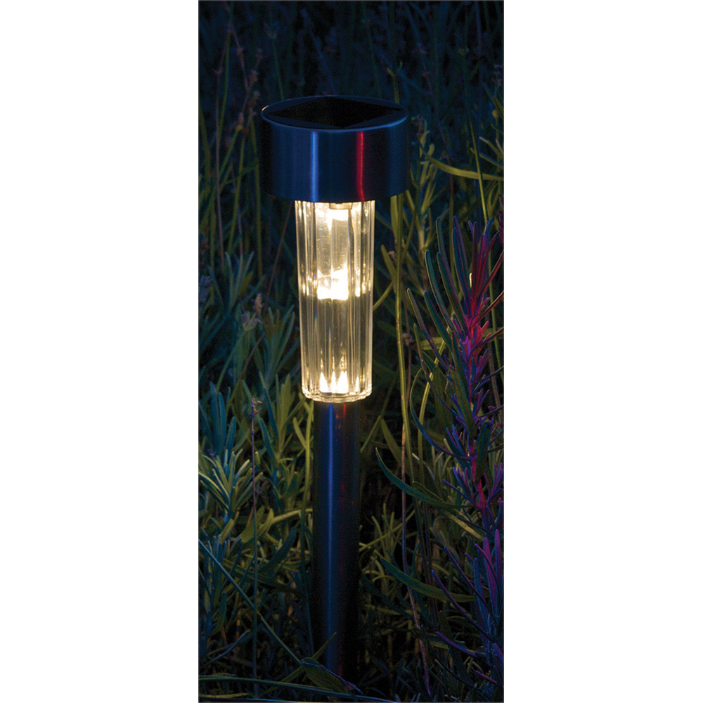 Enhance your outdoor space with the stylish Fuego LED Solar Garden Spike Light. Crafted from durable stainless steel, this light offers a blend of soft warm white and colour-changing RGB LEDs, creating a versatile and ambient glow for pathways, borders, or driveways. The integrated solar panel effortlessly recharges the AA battery throughout the day, providing up to eight hours of illumination once dusk arrives. Simply push the included spike into the ground – no wiring needed – and enjoy the automatic on/off function, switching on at dusk and off at dawn. This IP44-rated light offers an energy-efficient and attractive way to illuminate your garden.