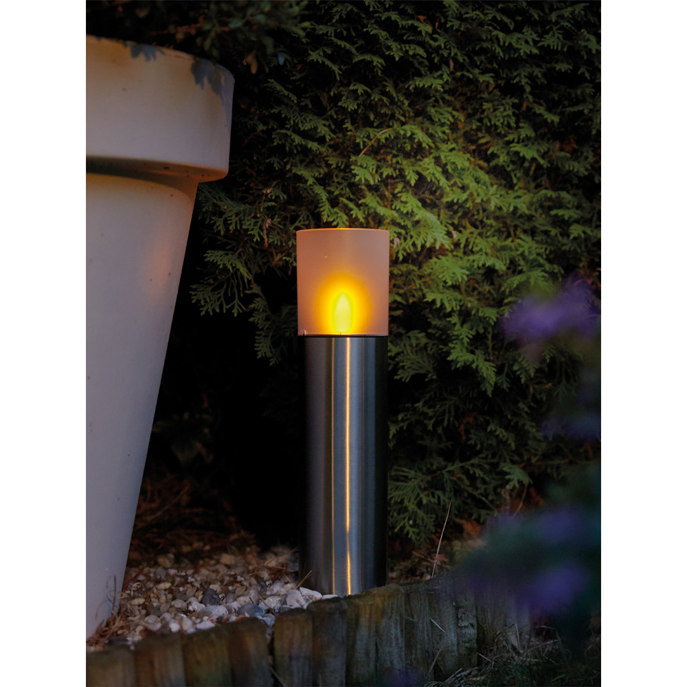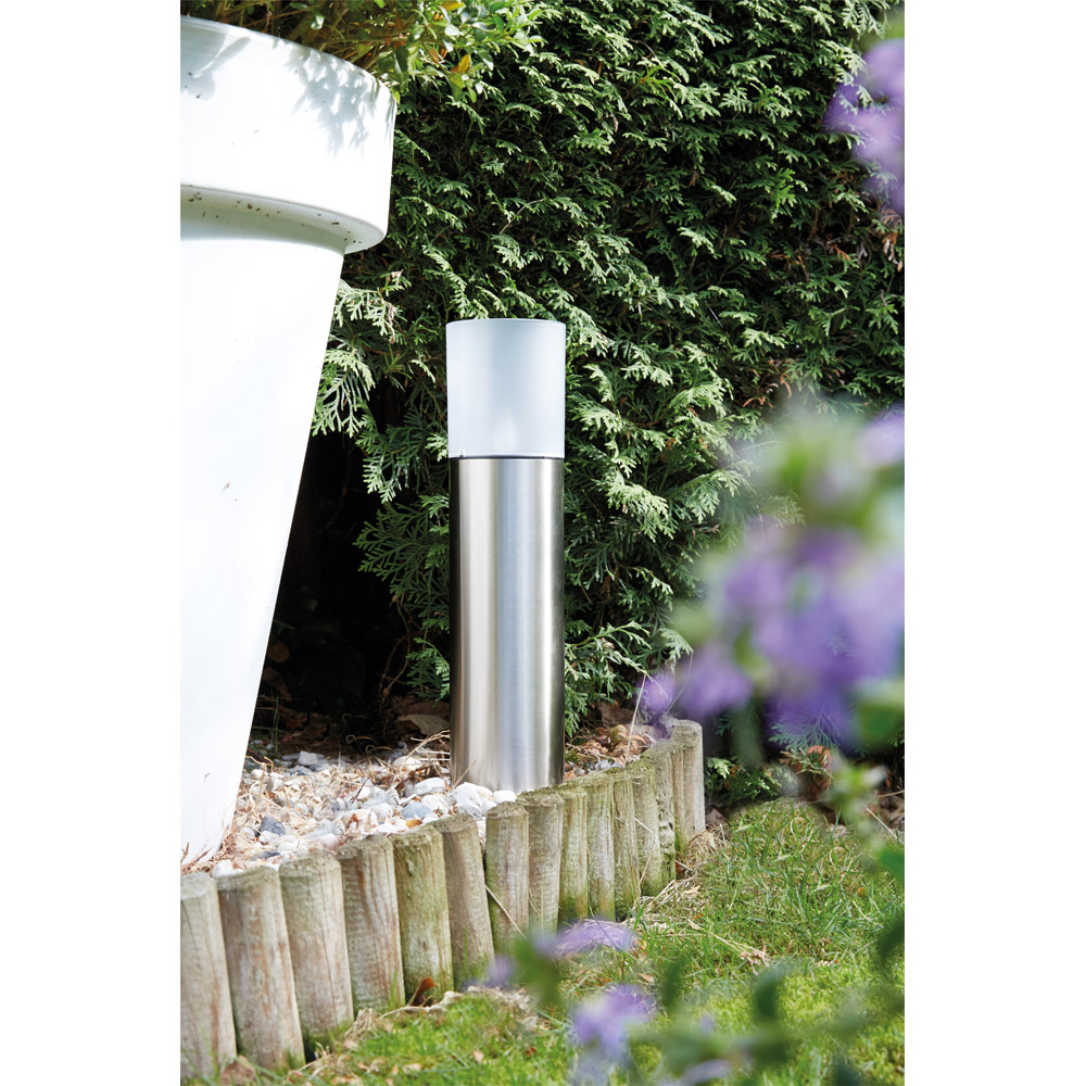 Add a touch of stylish illumination to your garden with the Luxform Lambada Solar Spike Light. Crafted from durable stainless steel, this elegant light enhances any outdoor setting, from pathways and borders to driveways. Simply push the included spike into the ground – no wiring needed! The integrated solar panel silently recharges the AA battery throughout the day, providing up to eight hours of ambient light once dusk arrives. The light automatically switches on at nightfall and off at dawn, offering convenient, energy-efficient illumination. Its IP44 rating ensures weather resistance for reliable performance. The light has an on/off switch.