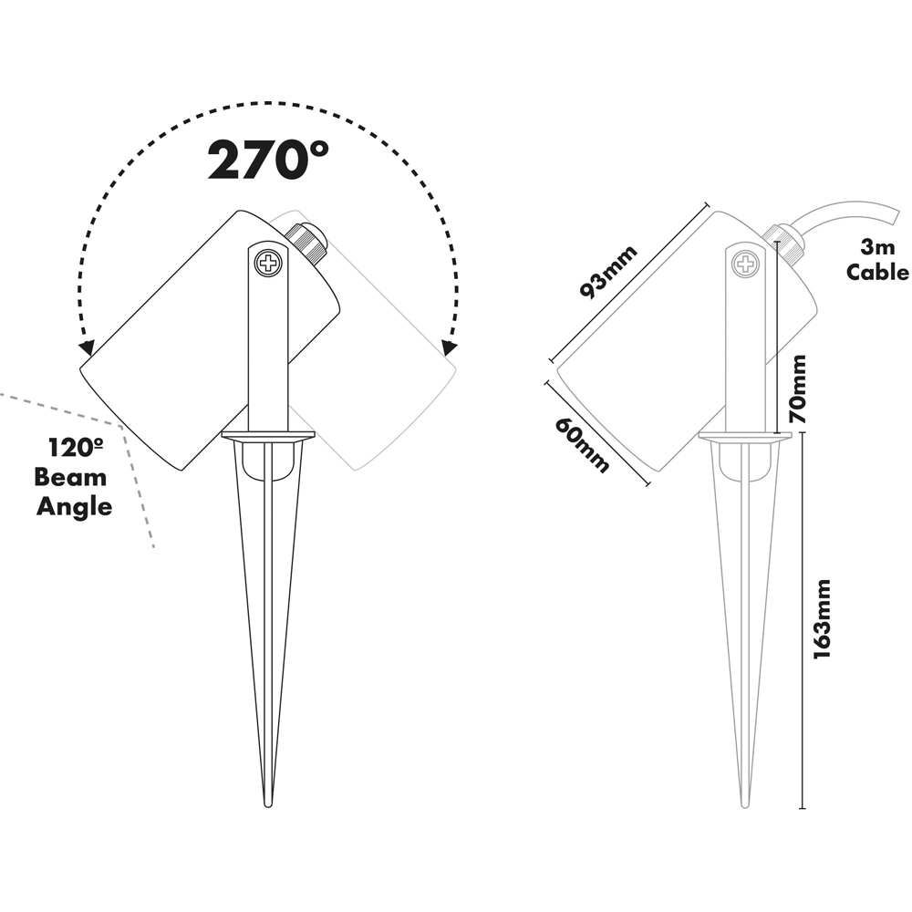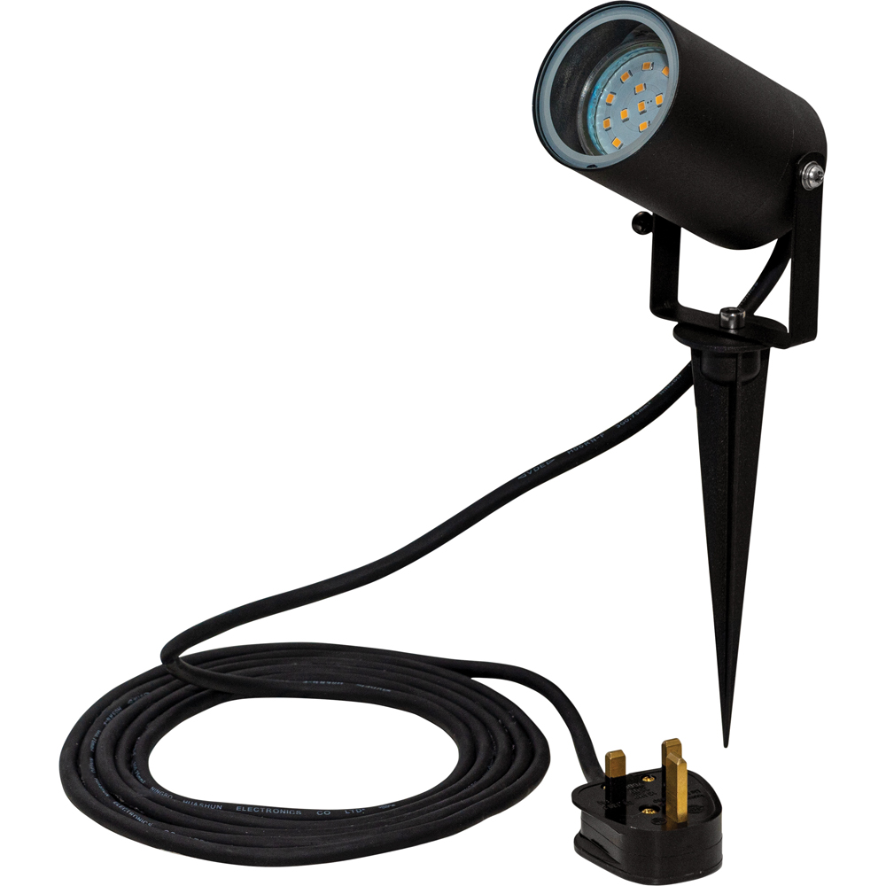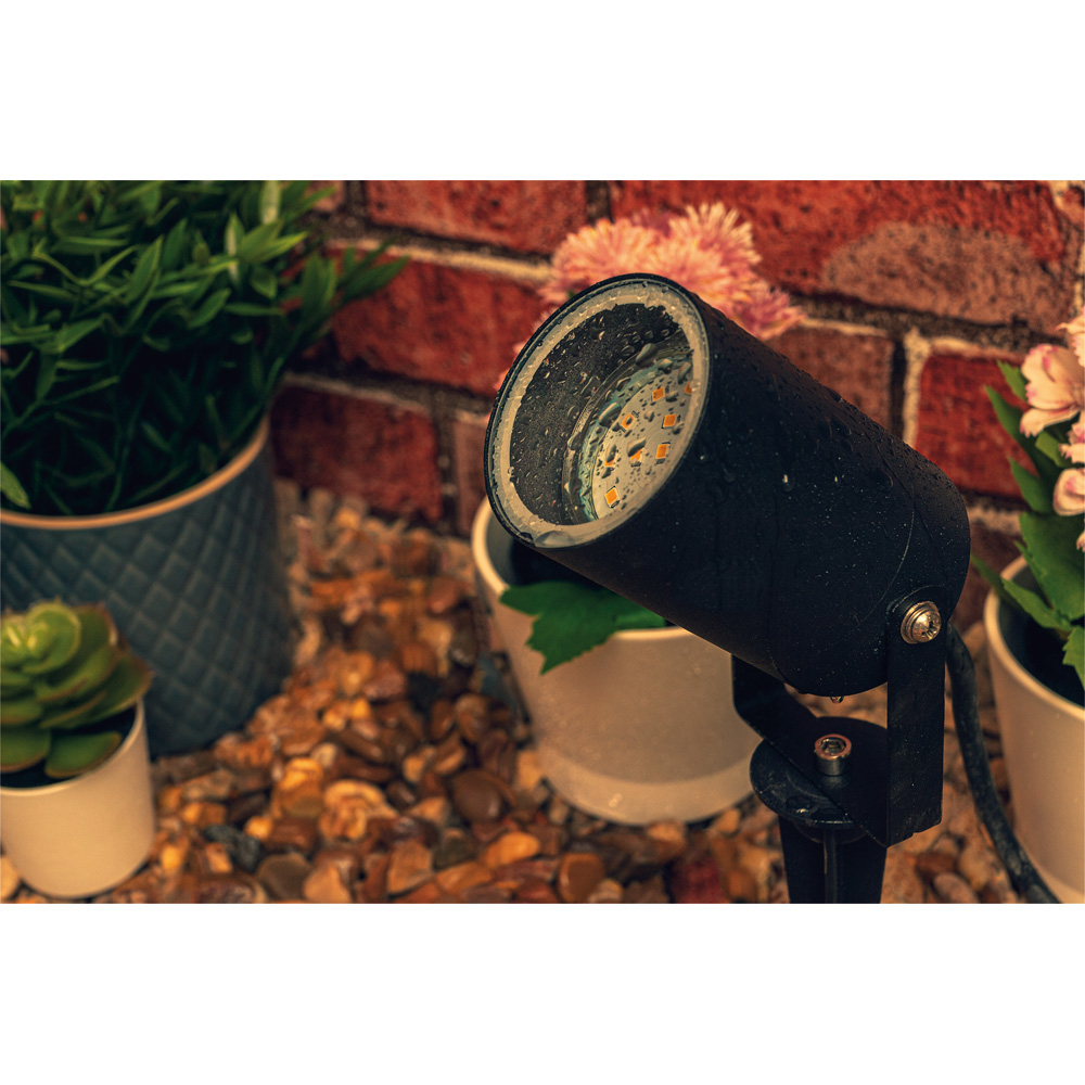 Enhance your garden',s ambience with the Luxform Onyx Garden Spike Spotlight. This stylish black spotlight is perfect for illuminating architectural features, statues, or pathways, offering a simple plug-and-play solution. No extra wiring is needed, simply unpack and enjoy its immediate illumination. Crafted from high-quality materials, this 230V light includes a long-life 4W LED lamp and a generous 3m rubberised cable with a fitted 13A plug for effortless installation. Its flexible U-shaped bracket allows for versatile wall or ground mounting, ensuring optimal positioning to highlight your favourite garden features.