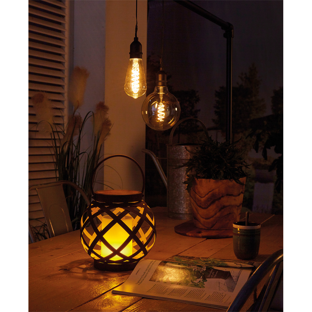 Add a touch of elegance to your garden with the Luxform Rattan Table Lantern. This stunning solar-powered lantern creates a warm ambient glow, perfect for illuminating garden tables, posts, or patios. Its rattan design adds character to any outdoor space, while the integrated handle allows for versatile hanging from trees or umbrellas. Simply place it in direct sunlight during the day – the integral solar panel will recharge the battery, providing up to six hours of light automatically from dusk till dawn. Featuring 51 running amber LEDs, this energy-efficient lantern offers effortless enchantment for your garden parties or simply to enhance your evening ambience.