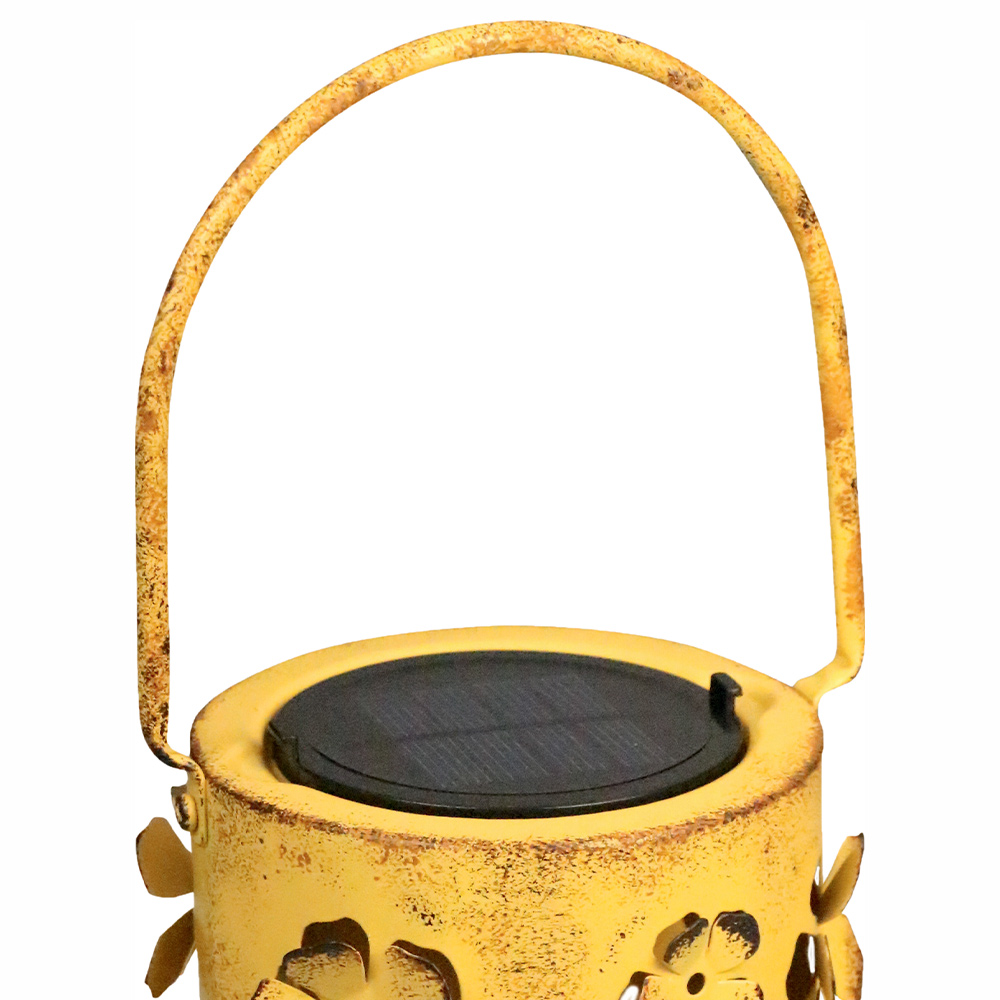 This charming solar-powered daisy lantern adds a cheerful glow to your garden. Available in yellow, green, blue, or red, it casts a welcoming light perfect for tables, posts, or patios. Completely wire-free, its integrated solar panel charges the AA battery during the day, providing up to eight hours of ambient light. The lantern automatically turns on at dusk and off at dawn, offering a stylish and energy-efficient way to illuminate your outdoor space. It features a convenient on/off switch.