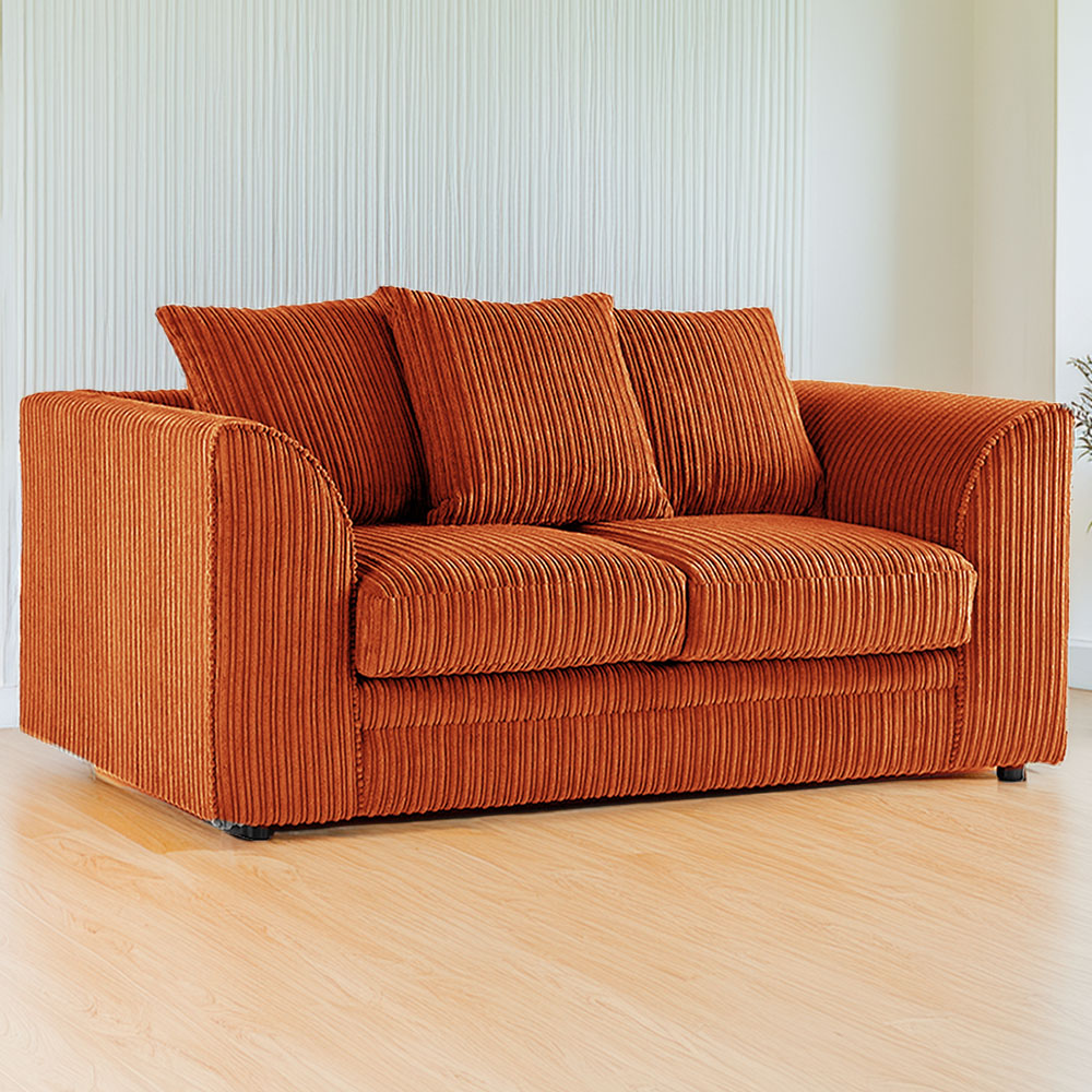 Luxor 2 Seater Orange Jumbo Cord Fabric Sofa Set with Scatter Back