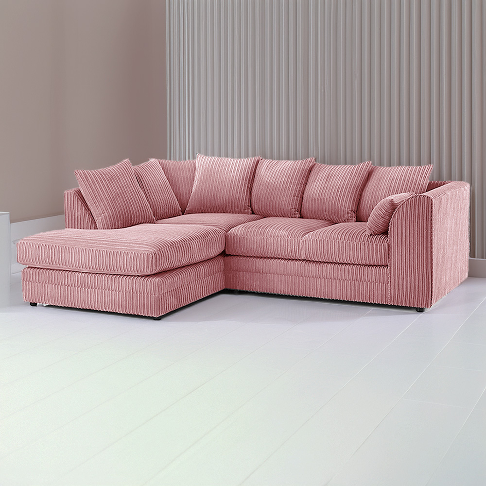 Luxor 3 Seater Pink Jumbo Cord Left Hand Facing L Shaped Corner Sofa