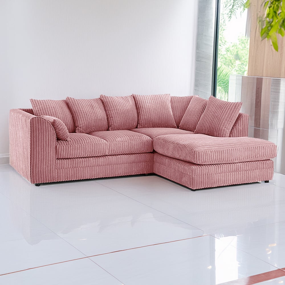Luxor 3 Seater Pink Jumbo Cord Right Hand Facing L Shaped Corner Sofa