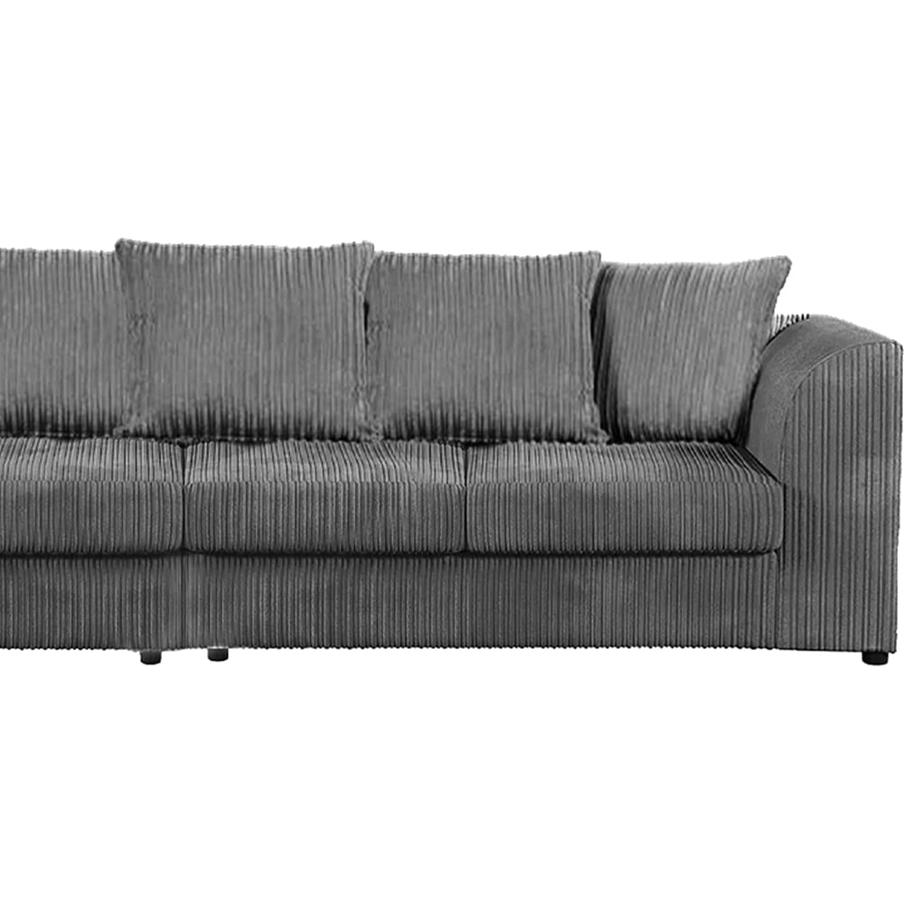 Luxor 4 Seater Grey Jumbo Cord Long Sofa with Scatter Back