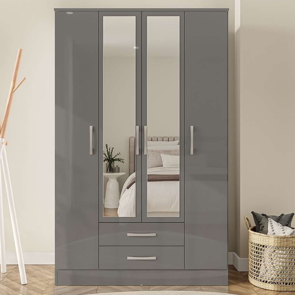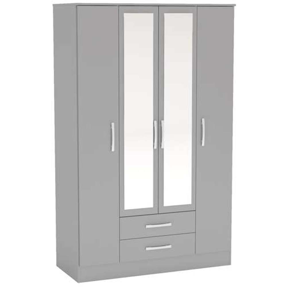 Lynx 4 Door 2 Drawer Grey Mirror Wardrobe