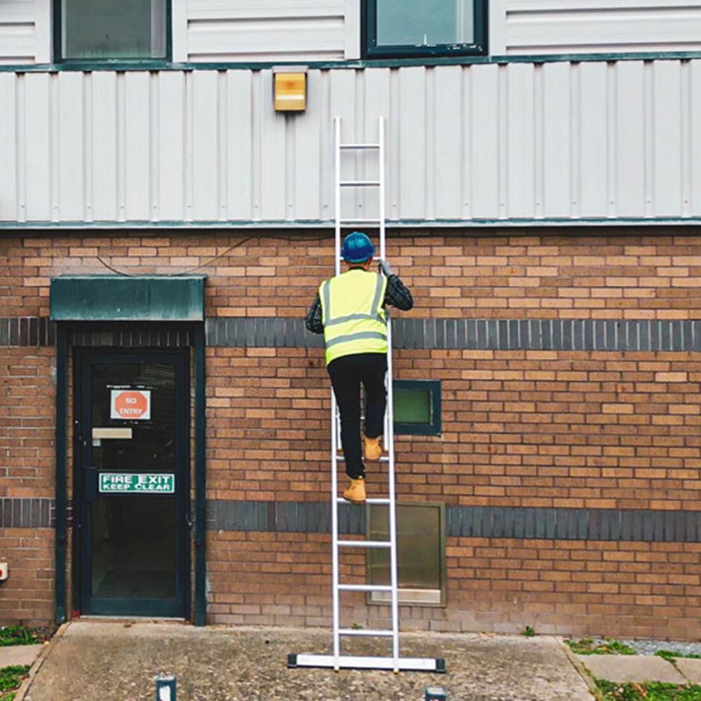 The Lyte Ladders & Towers EN131-2 Professional 2 Section 34 Rung Extension Ladder is constructed with high-grade materials. This two-section ladder features 34 sturdy D-shaped rungs, meeting the latest EN131 safety standards for comfortable and secure climbing. Improved box section stiles and an adjacent stabilizer bar provide enhanced stability and ease of use. With a maximum load capacity of 150kg, it's ideal for DIY projects and garden maintenance, ensuring safe and efficient work at height.