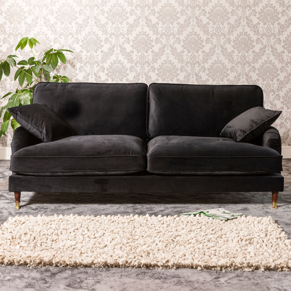 Mackenzie 4 Seater Black Plush Velvet Sofa