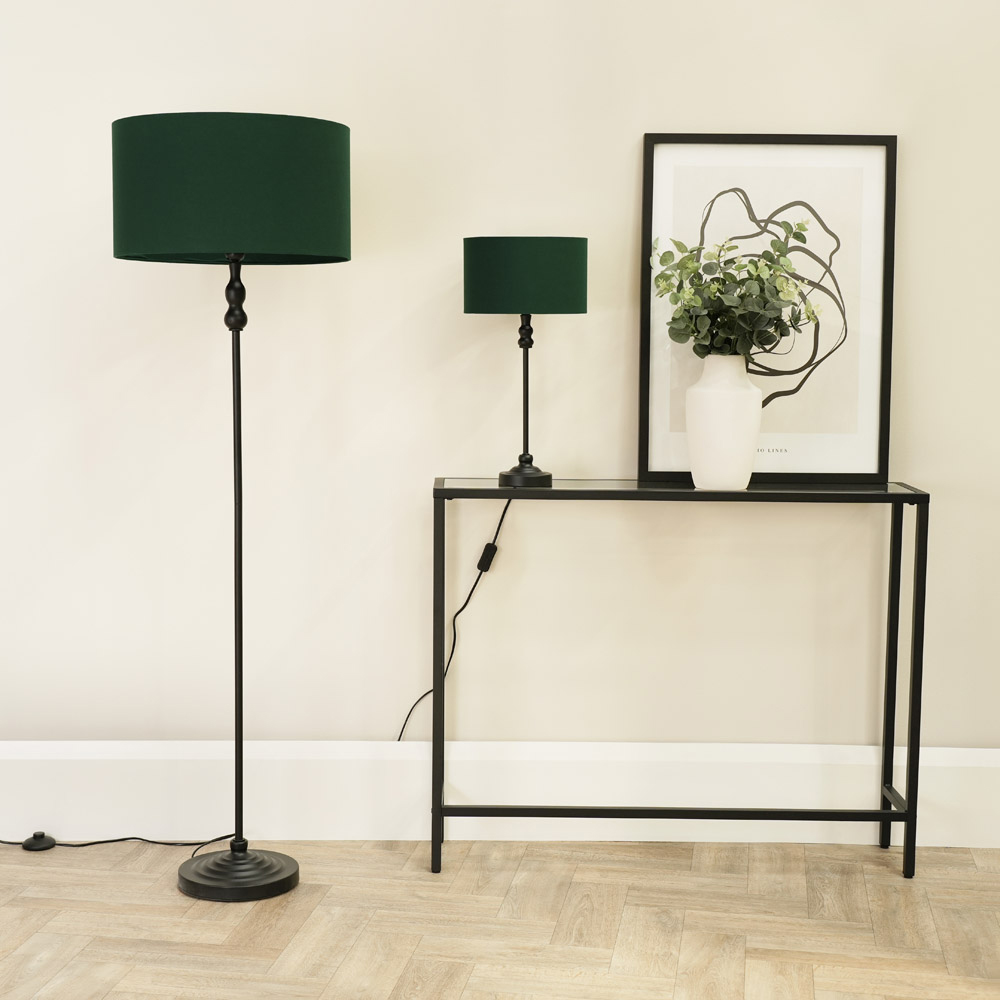 ValueLights Maggie Forest Green and Black Drum Shade Candlestick LED Table Lamp