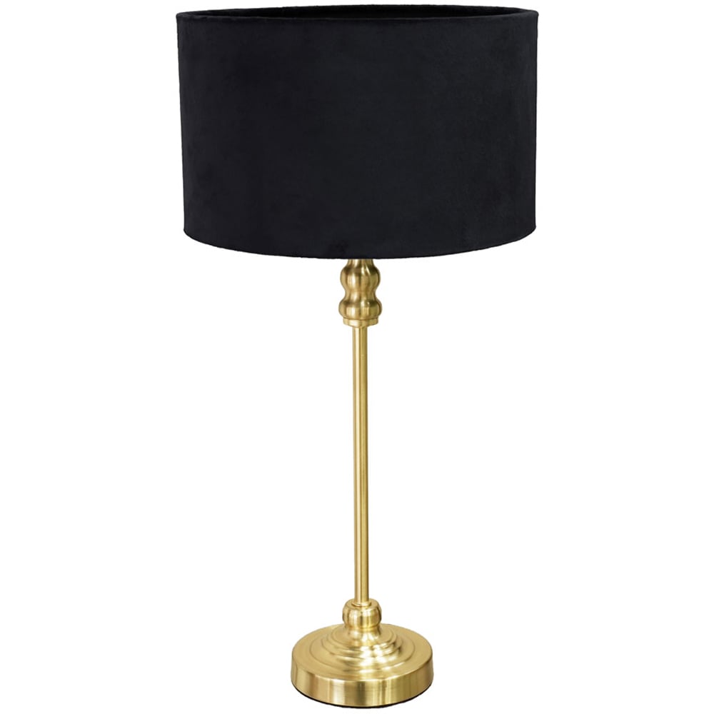 ValueLights Maggie Black Velvet and Gold Drum Shade Candlestick LED Table Lamp