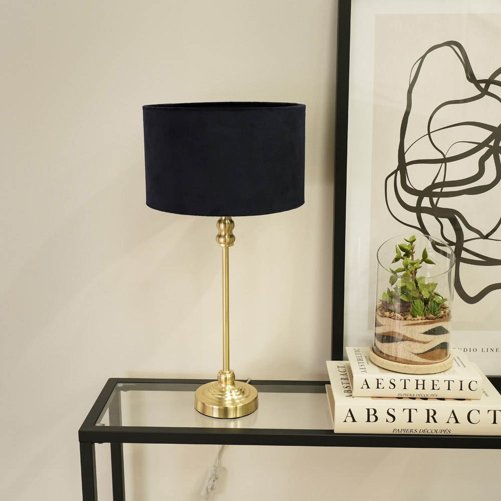 Elevate your space with the Maggie table lamp, a sophisticated blend of style and function. Its slim gold base is perfect for smaller areas, adding a touch of luxury without overwhelming the room. The rich black velvet drum shade softens the warm LED light, creating an inviting atmosphere. Ready to use with its integrated energy-efficient LED, this lamp is a practical and elegant addition to any living space. Complete with a 12-month warranty for your peace of mind. Dimensions: H50 x W25 x D25cm.