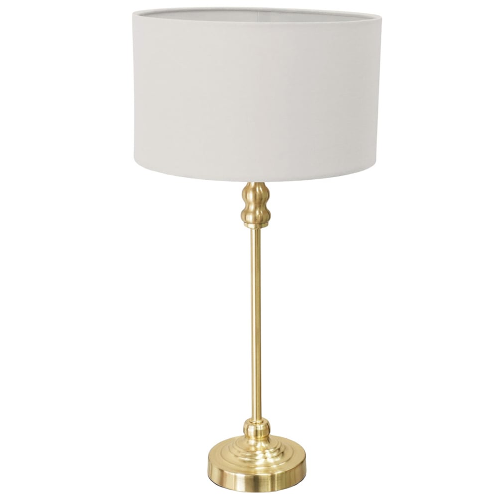 ValueLights Maggie Grey and Gold Drum Shade Candlestick LED Table Lamp