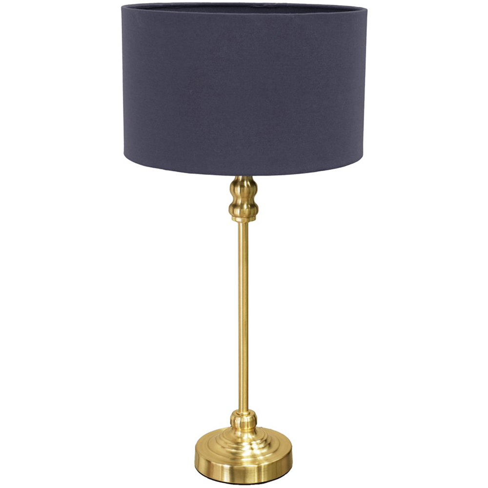 ValueLights Maggie Navy Blue and Gold Drum Shade Candlestick LED Table Lamp