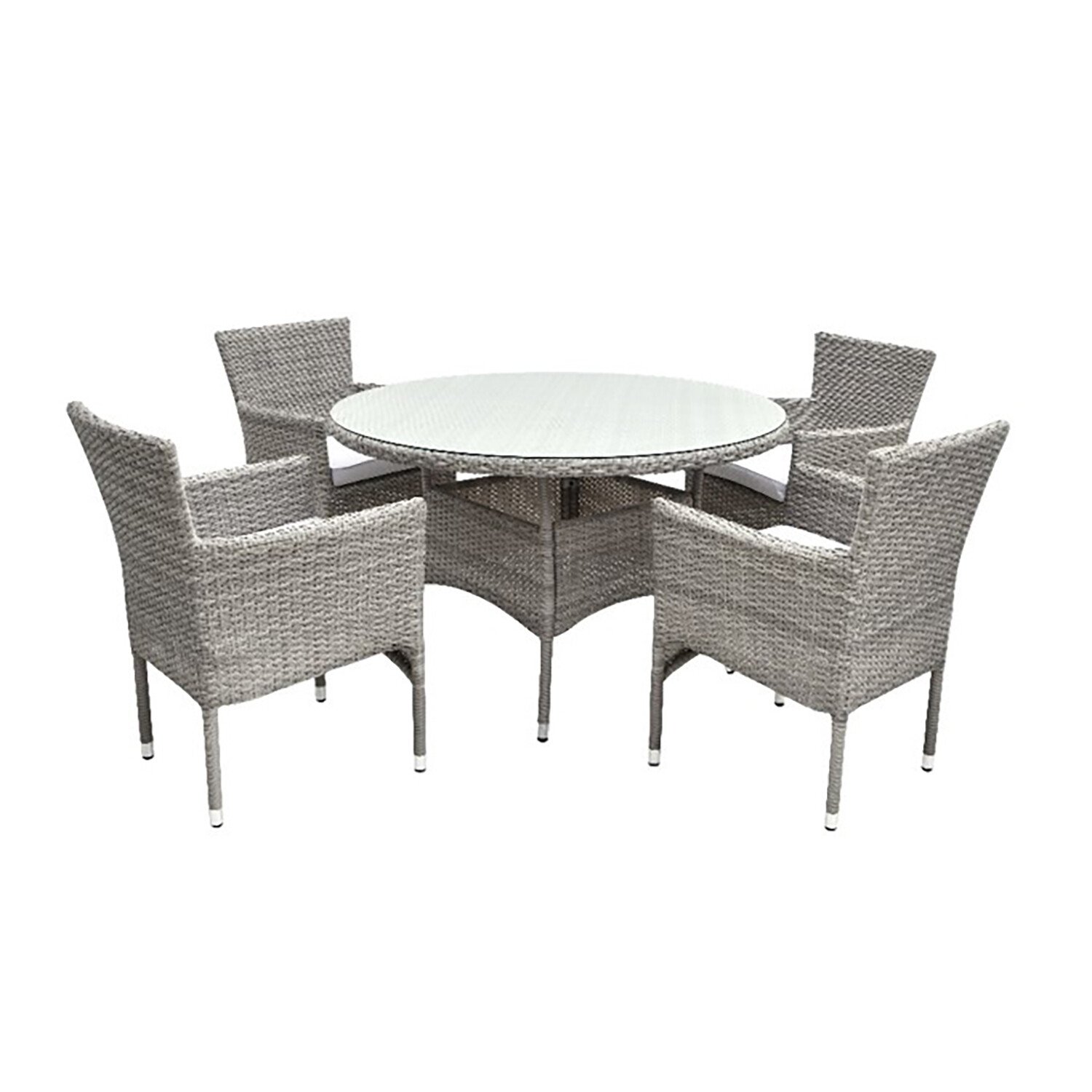 The Madrid Five Piece Dining Set is a wonderful addition to your garden, ideal for hosting barbecues or outdoor gatherings. Whether you're dining with friends or unwinding on your decking, this set includes four comfortable chairs and a round glass-top table, perfect for any social occasion. Built with a durable aluminium frame and a stylish rattan finish, it’s the perfect set for relaxing and enjoying the sun.