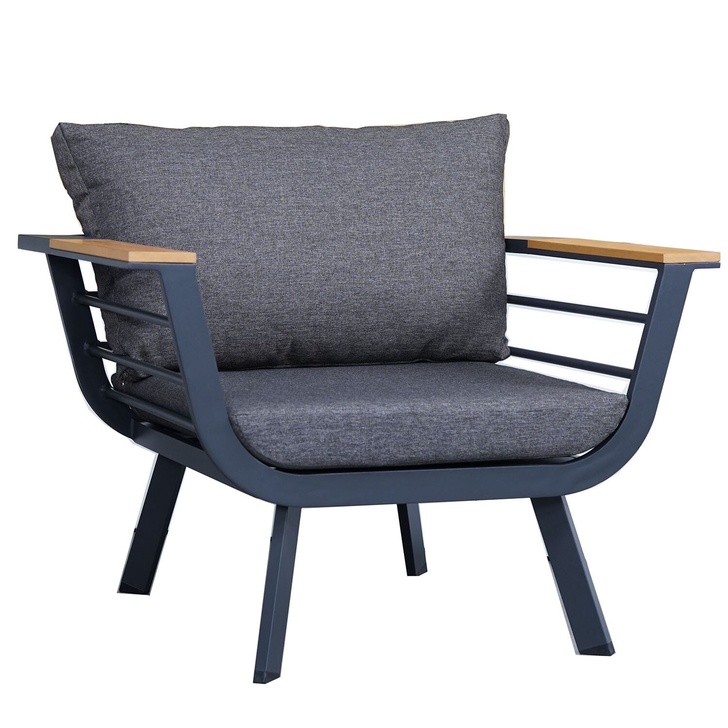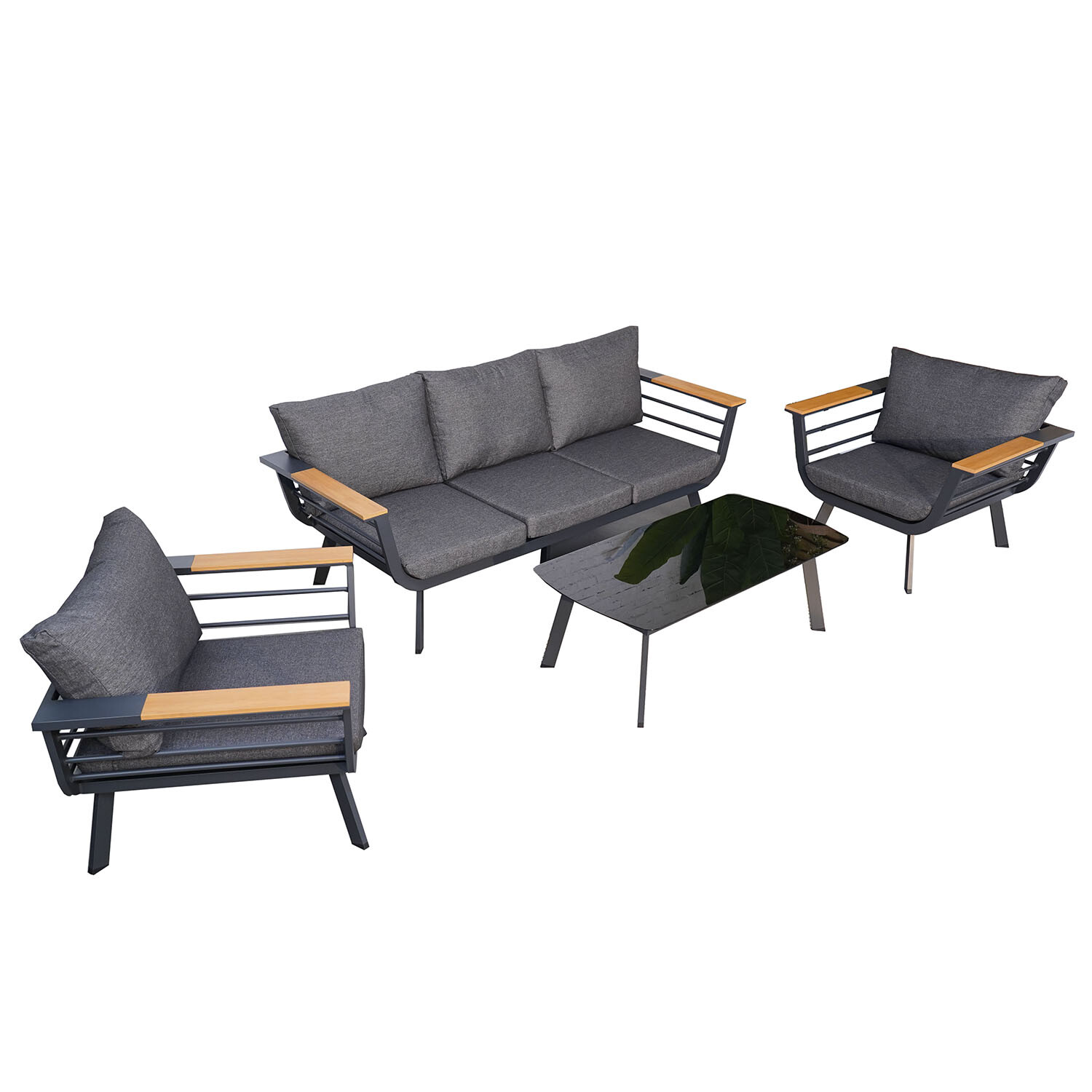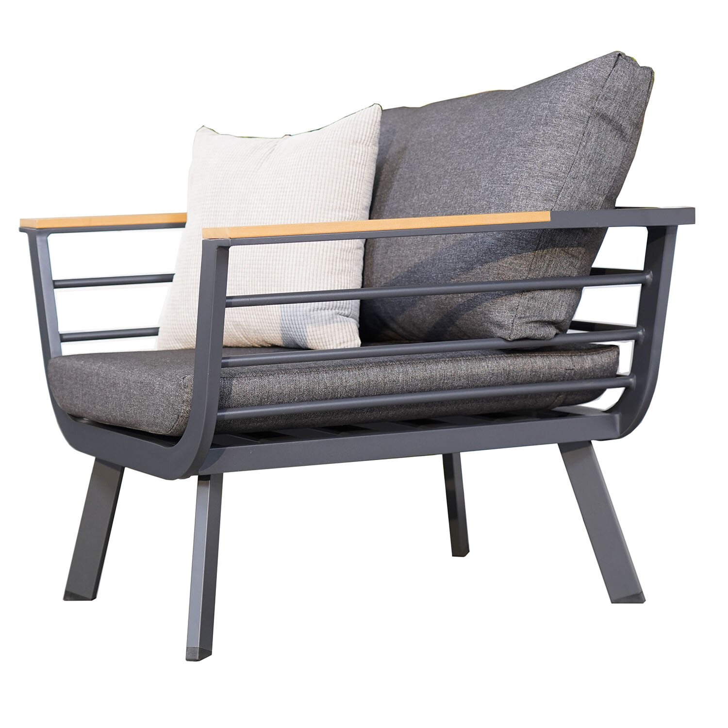 Make your alfresco more inviting with Malay Saltram 5 Seater Grey Outdoor Sofa Set. This set is perfect for your garden, patio, or decking, giving you both comfort and modern look. The sturdy aluminium frame is built to handle any weather, so you don’t have to worry about rain or sun damage, allowing you to enjoy it all year round. The cushions are super soft and comfortable, making it the best spot to relax. Apart from one three-seater sofa and two chairs, this set also includes one sleek glass-top coffee table, perfect for your snacks and drinks when you are hanging out with family or friends.