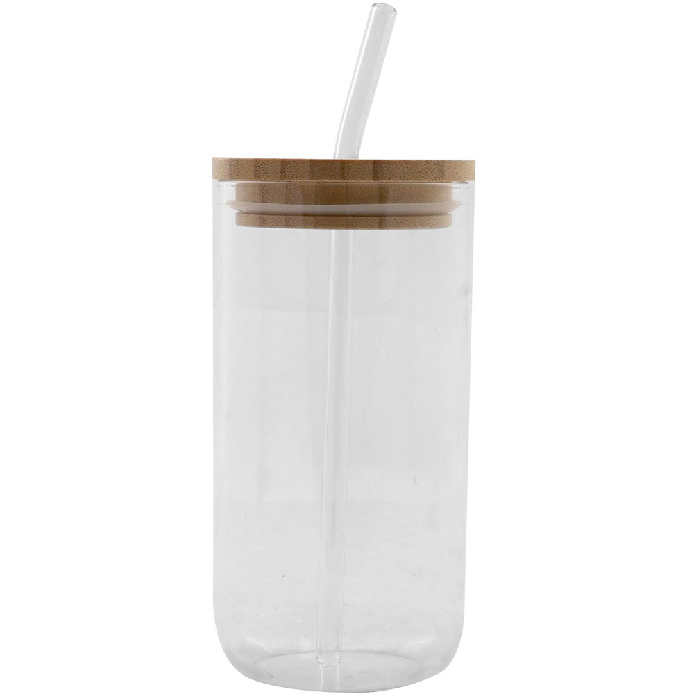 Malmo 550ml Clear Glass with Bamboo Lid and Straw