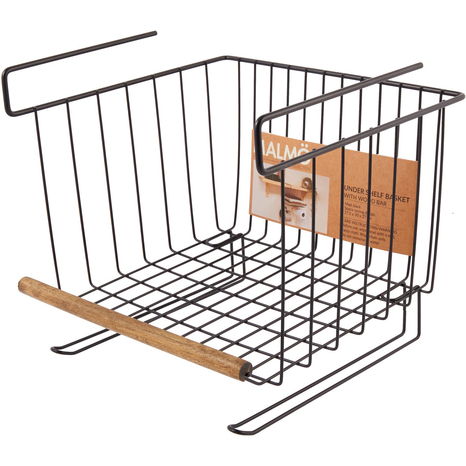 Keep your kitchen clutter-free with the Malmo Under Shelf Storage Basket. Featuring a black and natural wood finish for a contemporary, urban aesthetic, this basket maximises your available space. Perfect for storing tea towels, kitchen rolls, and other essentials, it easily attaches to any shelf. Designed to help you save space and make the most of what you have, it's quick and easy to attach and coordinates beautifully in your space, especially alongside other pieces from our minimalist Malmo collection for a unified look in your kitchen.