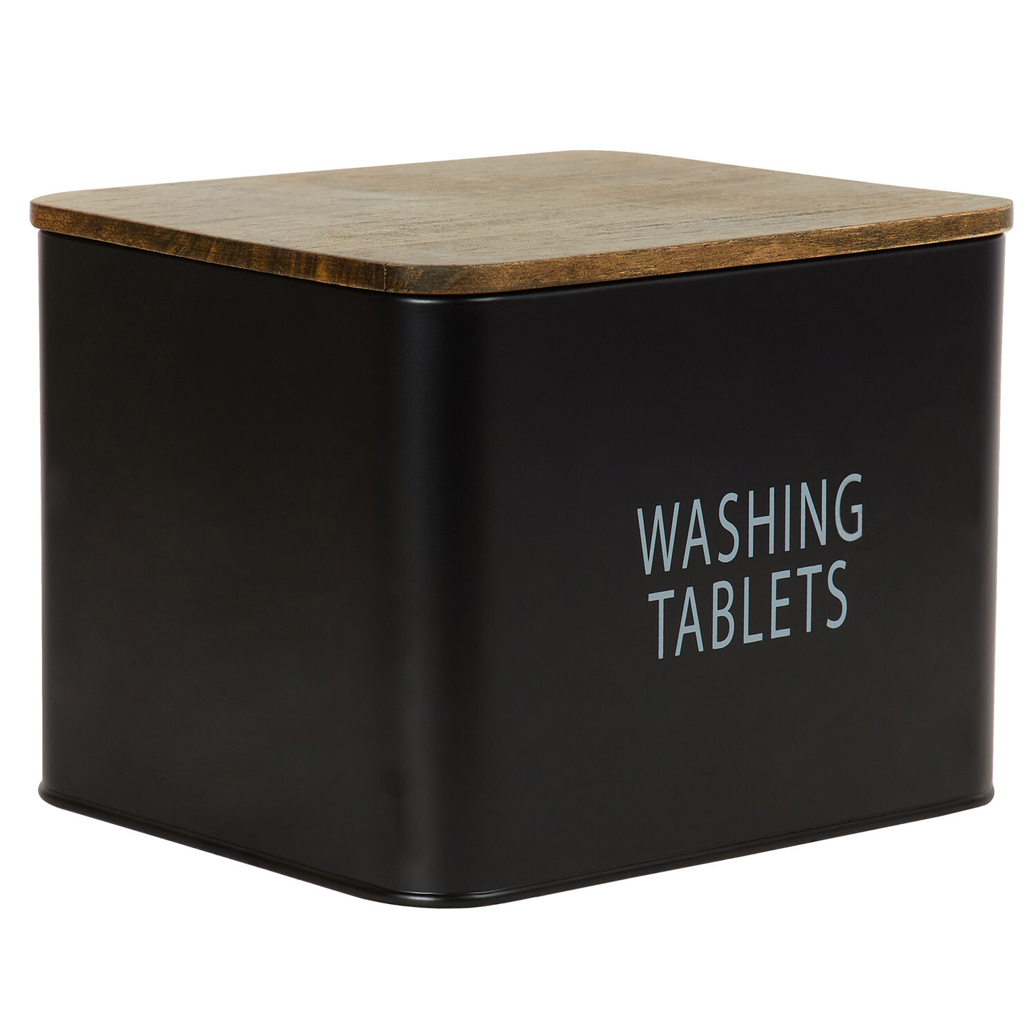 Conceal unsightly cleaning supplies with effortless style using the Malmo Washing Tablet Box. This sleek, black matte storage box features a contemporary dark wood lid, echoing minimalist Scandi design. Perfect for discreetly storing tablets under the sink or in a utility room, this box keeps your space tidy and clutter-free.