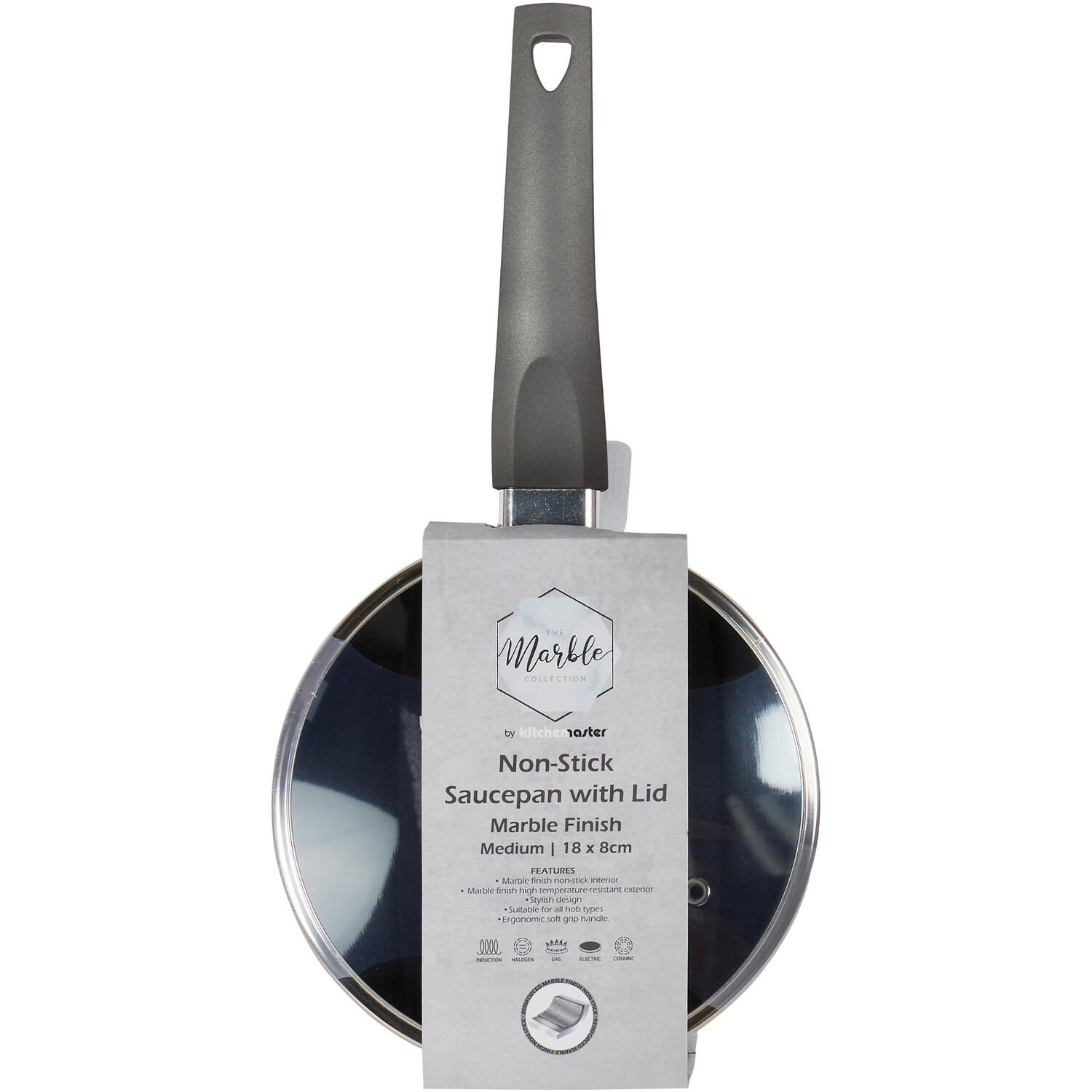Elevate your everyday cooking. This saucepan, featuring a marble finish and non-stick interior for easy serving and cleaning, simplifies meal preparation and cleanup. Its high temperature-resistant exterior ensures durability, while the ergonomic soft-grip handle and tempered glass lid enhance usability. Compatible with all hob types for ultimate convenience. Ideal for soups, pasta, vegetables, and more.