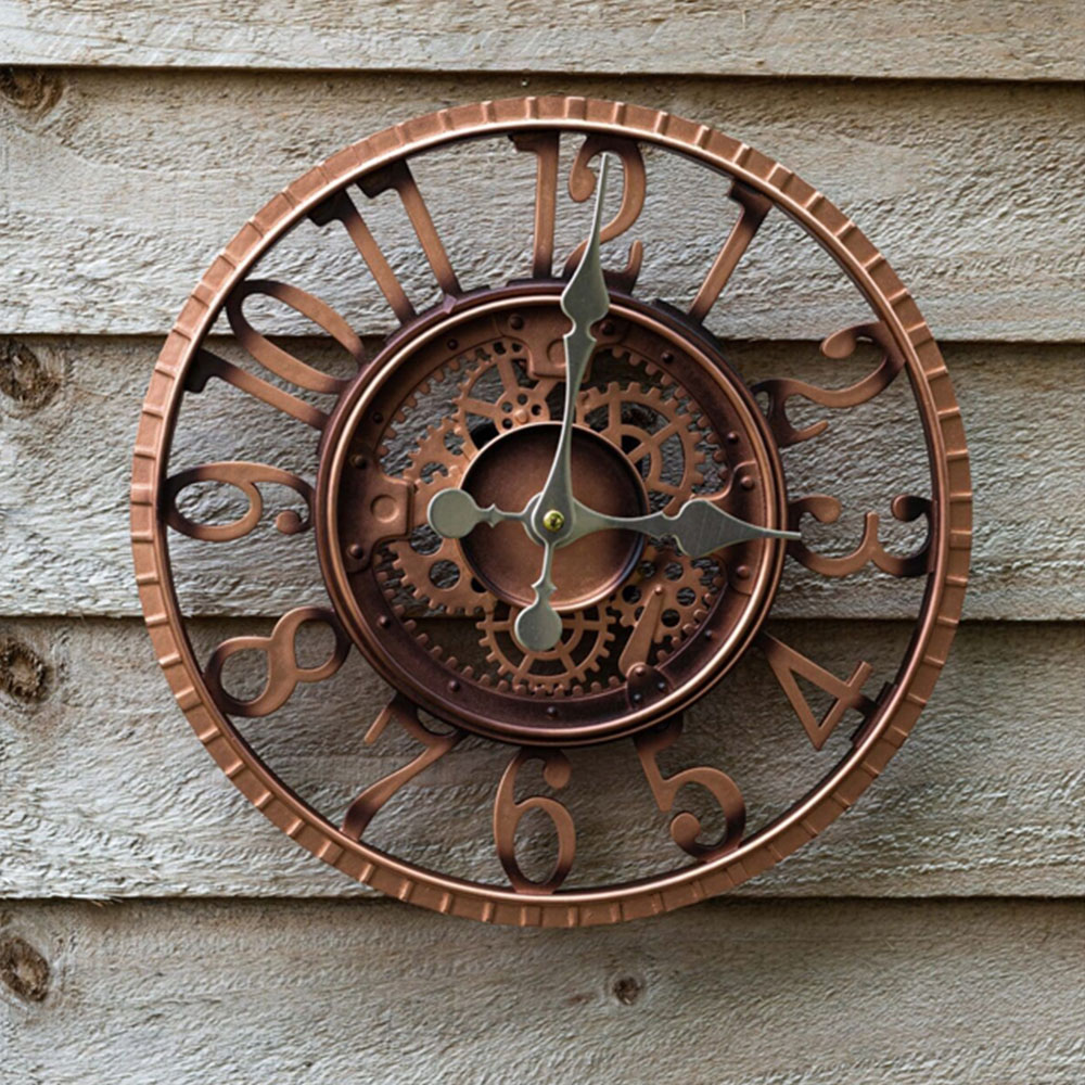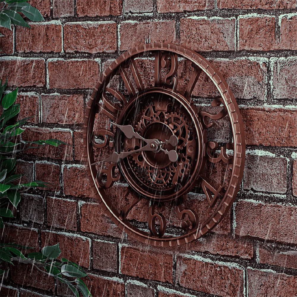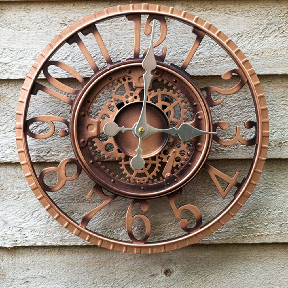 Elevate your home',s aesthetic with the Marco Paul 12-inch Bronze Arabic Open Face Clock. This stylish garden clock offers a sophisticated blend of practicality and design, equally at home indoors or outdoors. Its industrial look, featuring classic Arabic numerals and a weather-resistant bronze finish, adds a touch of timeless elegance to any setting. Whether gracing your living room or enhancing your garden, this clock is a beautiful and functional addition.