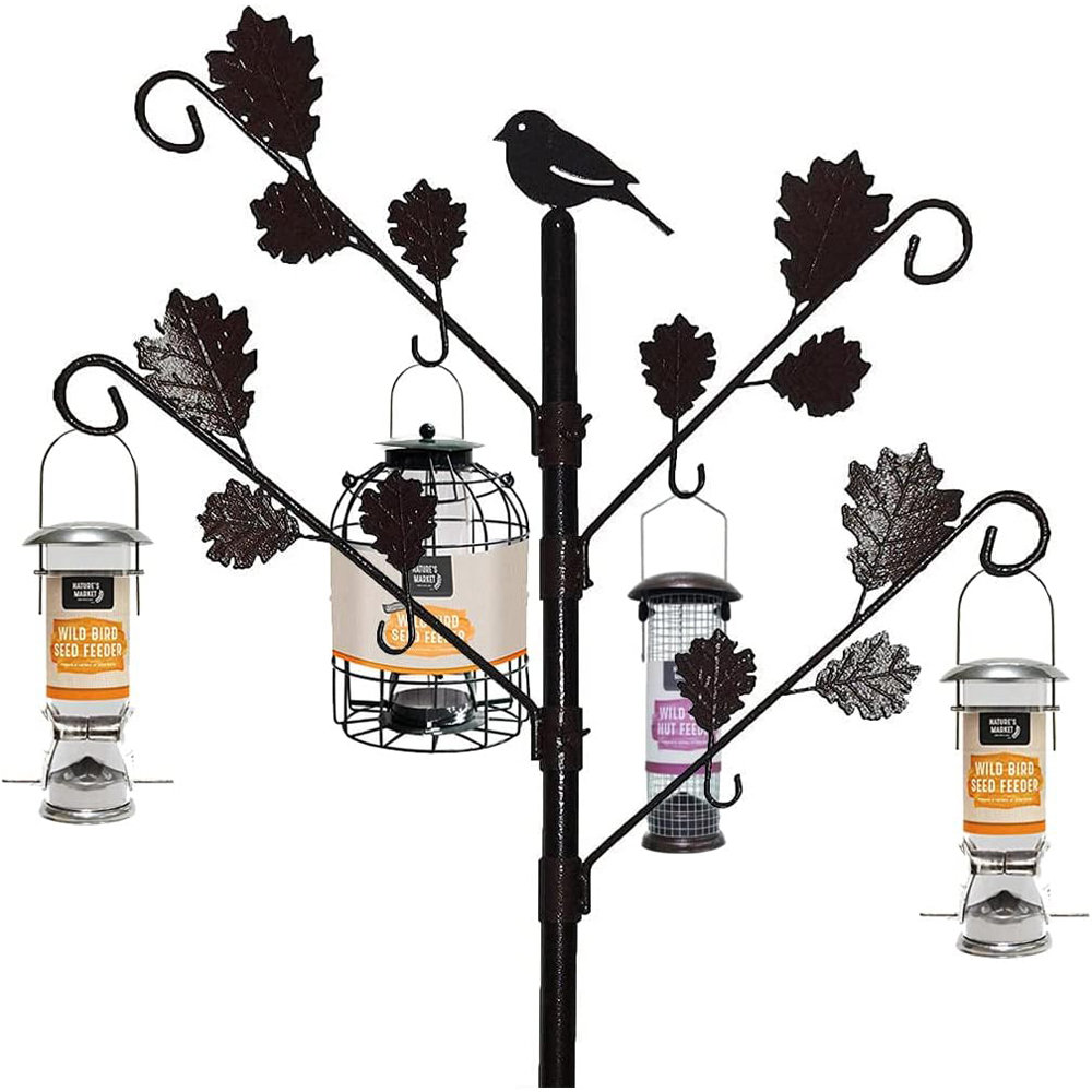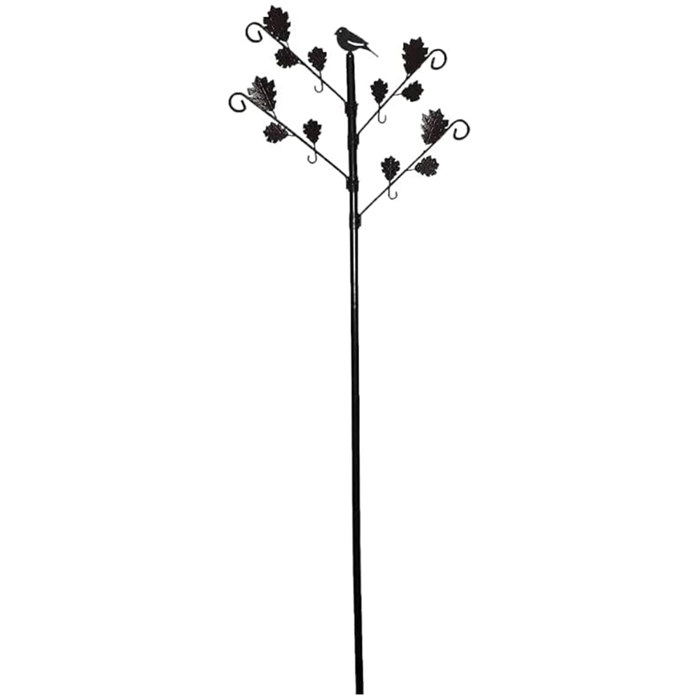 Give birds a reason to visit your garden with the Marco Paul Decorative Leaf Style Vintage Bird Feeding Station. This wild bird feeding station is not just practical, but a real eye-catcher too. With a beautiful decorative leaf design and a little bird sitting at the top, it will uplift the charm of your outdoor space. It comes with four adjustable branches, each with two hanging points. Therefore, you can easily hang different types of feeders. Whether it’s seeds, nuts, or fat balls, your feathered visitors will love it. Just place it in your garden, hang your favourite feeders, and enjoy watching the birds come back time and again. Made from iron with a vintage-look hammertone finish, it is built to last. Plus, it is fully waterproof, so it can handle any weather, rain or shine. The three-part pole system makes it easy to put together without requiring any tools. Simply push the base into soft ground or use a holder on a patio. Lightweight and portable, it’s easy to move around your garden whenever you like. Please note that feeders are not included.