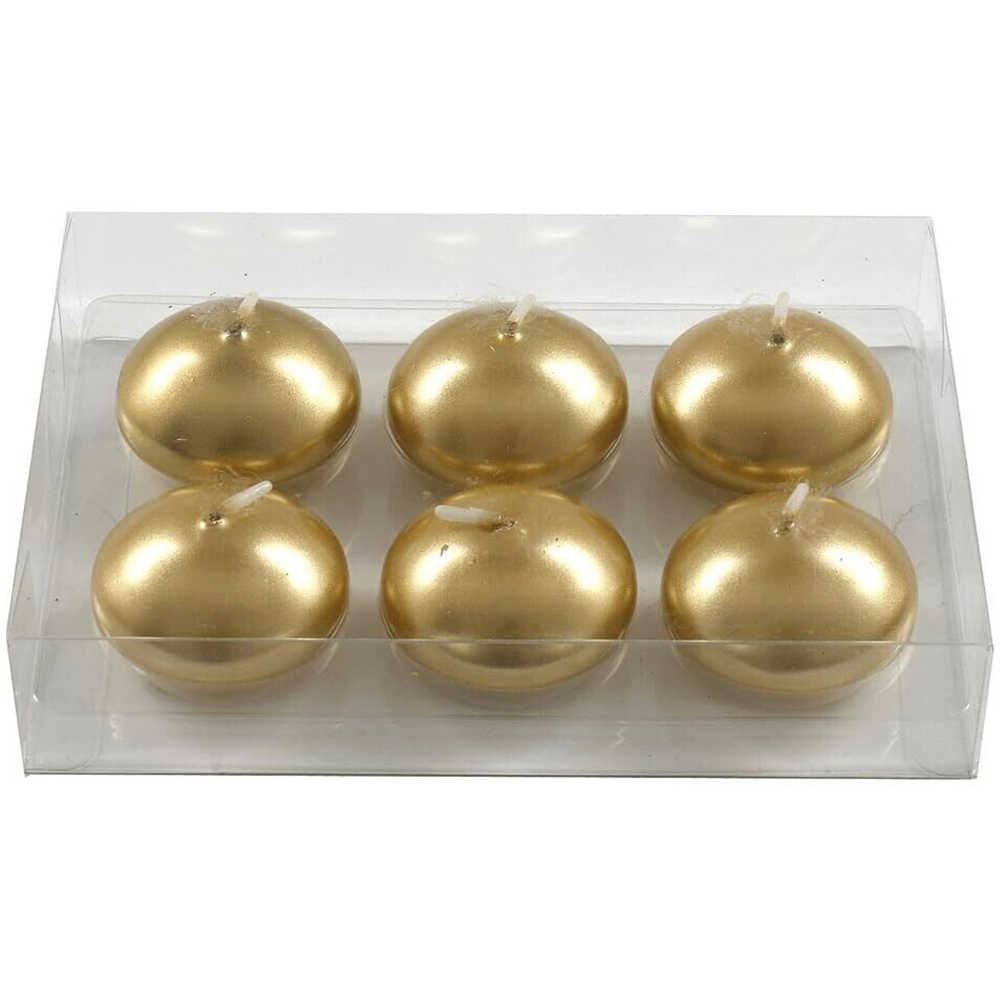 Bring a touch of luxury to your home with six elegant gold floating candles. Perfect for creating a warm and inviting atmosphere, these unscented candles boast a classic gold design, ideal for festive occasions, romantic evenings, or simply adding a touch of cosy elegance to your décor. Meticulously crafted from high-quality wax, each candle measures approximately 47 x 30mm. Use them in your bath, as wedding centrepieces, or to enhance your Christmas decorations.