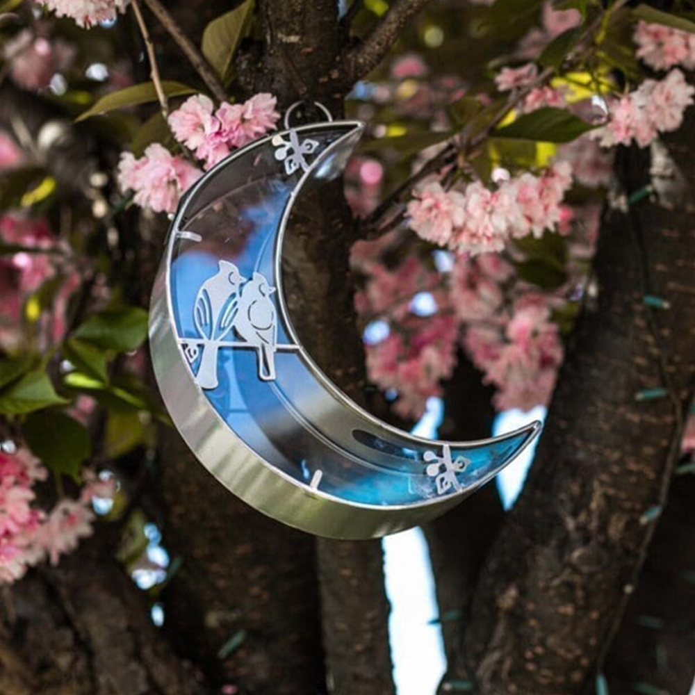 • Stylish silver moon-shaped bird feeder
