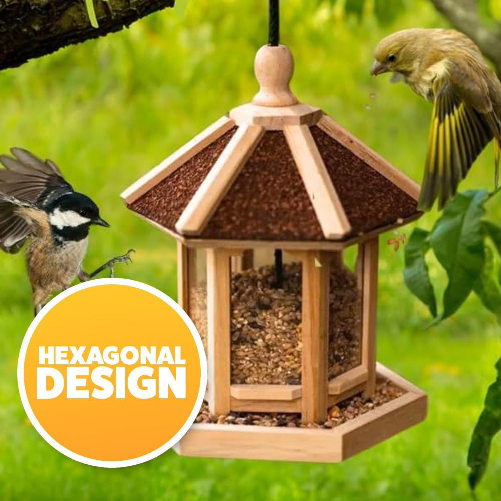 Attract a vibrant array of garden birds with this charming wooden gazebo bird feeder. Designed as a delightful feeding station, it allows you to provide a varied diet for your feathered friends. Simple to clean and refill using warm water, this weather and water-resistant feeder is built for lasting enjoyment, year after year. Versatile placement options include hanging from branches or brackets, or simply resting it on a table – wherever your birds are most likely to gather. A perfect gift for any bird enthusiast, ensuring a beautiful and functional addition to any garden.
