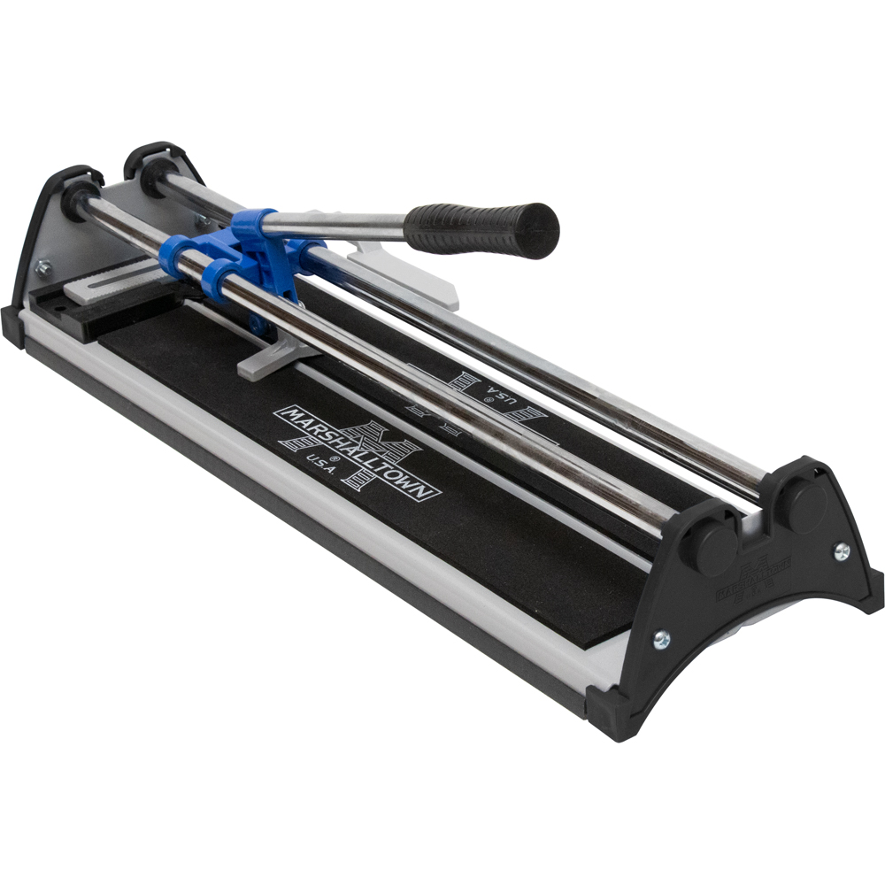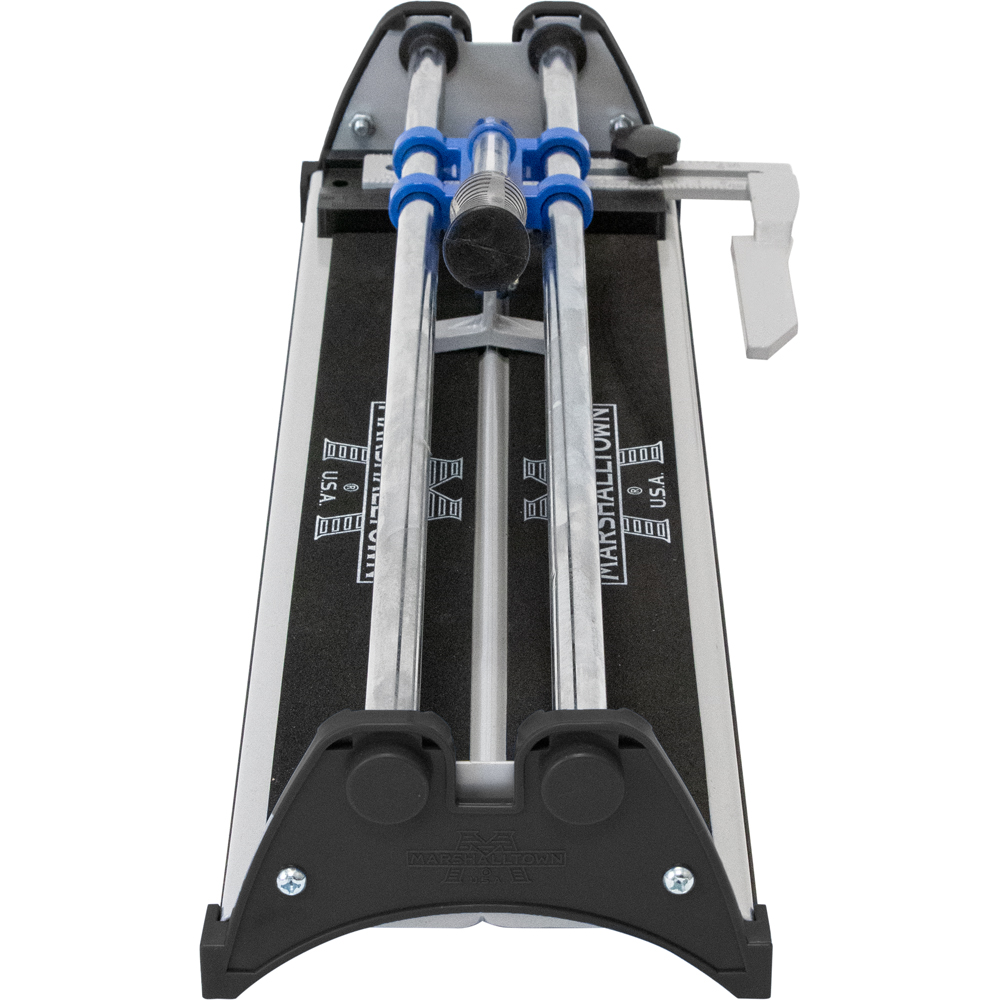 Cut ceramic, porcelain, and mosaic tiles with ease using this Marshalltown Tile Cutter. Suitable for tiles up to 17" in length and 1/2" (12mm) thick, it also allows for 45-degree angle cuts on tiles up to 12" x 12" (305 x 305mm). Featuring a smooth two-rod rail system and a tungsten carbide scoring wheel for quick, clean cuts. An adjustable measuring guide is also included for precise results.