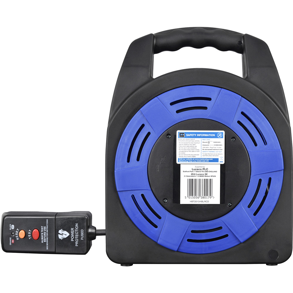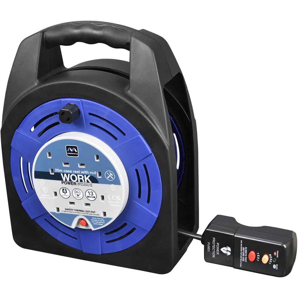 Masterplug Blue 13A 4 Socket Case Cable Reel with RCD 20m