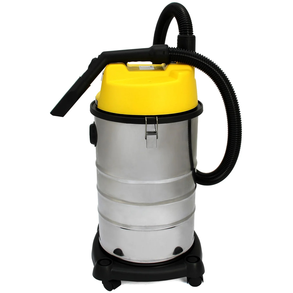 Effortlessly clean large areas with this industrial vacuum cleaner. Ideal for professional cleaners and home use alike, its high-performance motor tackles dirt, dust, pet hair, and spills on carpets and hard floors with ease. Four convenient attachments—a floor tool, bristle brush, crevice nozzle, and blowing pipe—along with smooth-rolling caster wheels, allow you to clean every corner. Experience superior cleaning power.