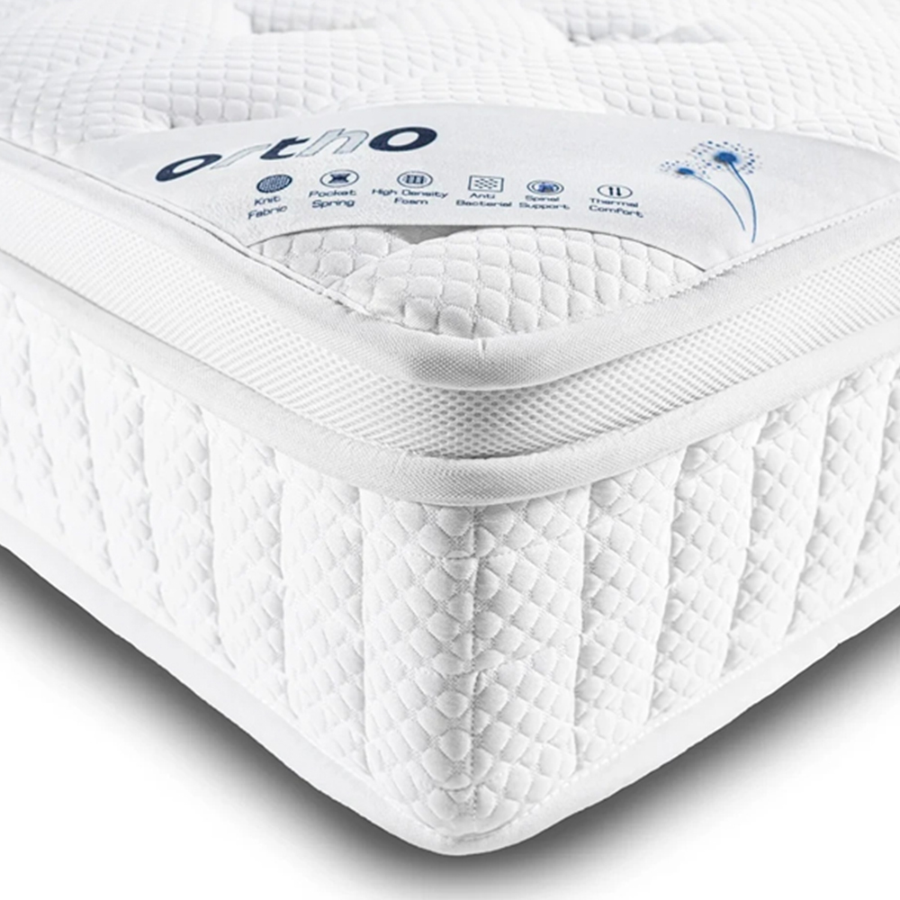 Unparalleled comfort and support are yours with the Maxitex Orthopaedic Mattress. A fire-resistant fabric ensures safety, while the plush 1.5cm quilt foam and non-woven layers deliver a luxurious feel. The 4cm soft plate foam and hard felt layer provide exceptional orthopaedic support, promoting proper spinal alignment. Durability and bounce are guaranteed by the 14cm bonnel spring system, all encased in elegant knitted fabric.