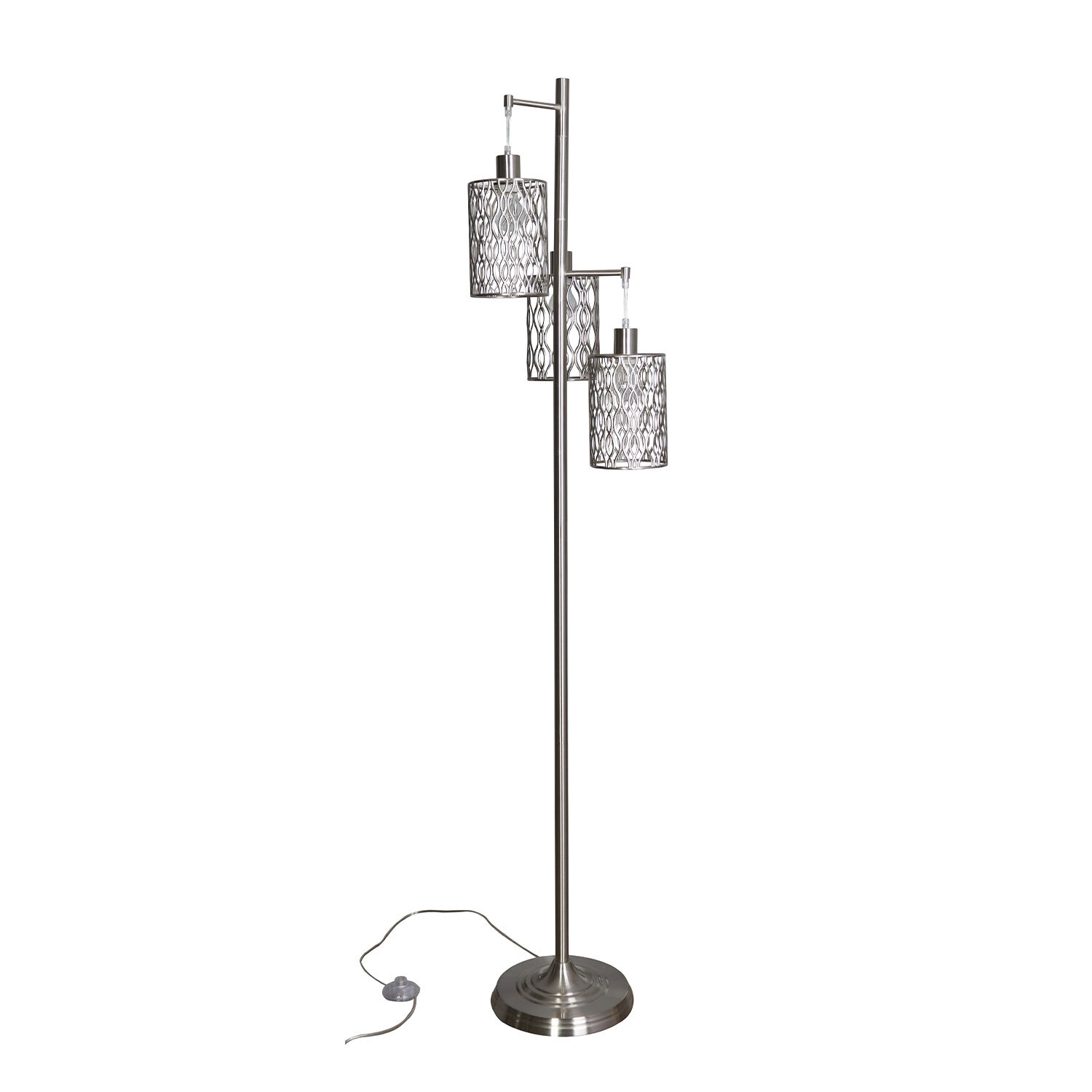 Elevate your space with the Maya 3-Light floor lamp. Its classic silver finish and three elegant, cut-out shades with an intertwined pattern create a refined ambiance. Perfect for rooms with light palettes—think whites, pastels, and greys—its adjustable lights offer subdued illumination ideal for reading or accent lighting a corner sofa or armchair. Requires E27 lightbulbs (not included.