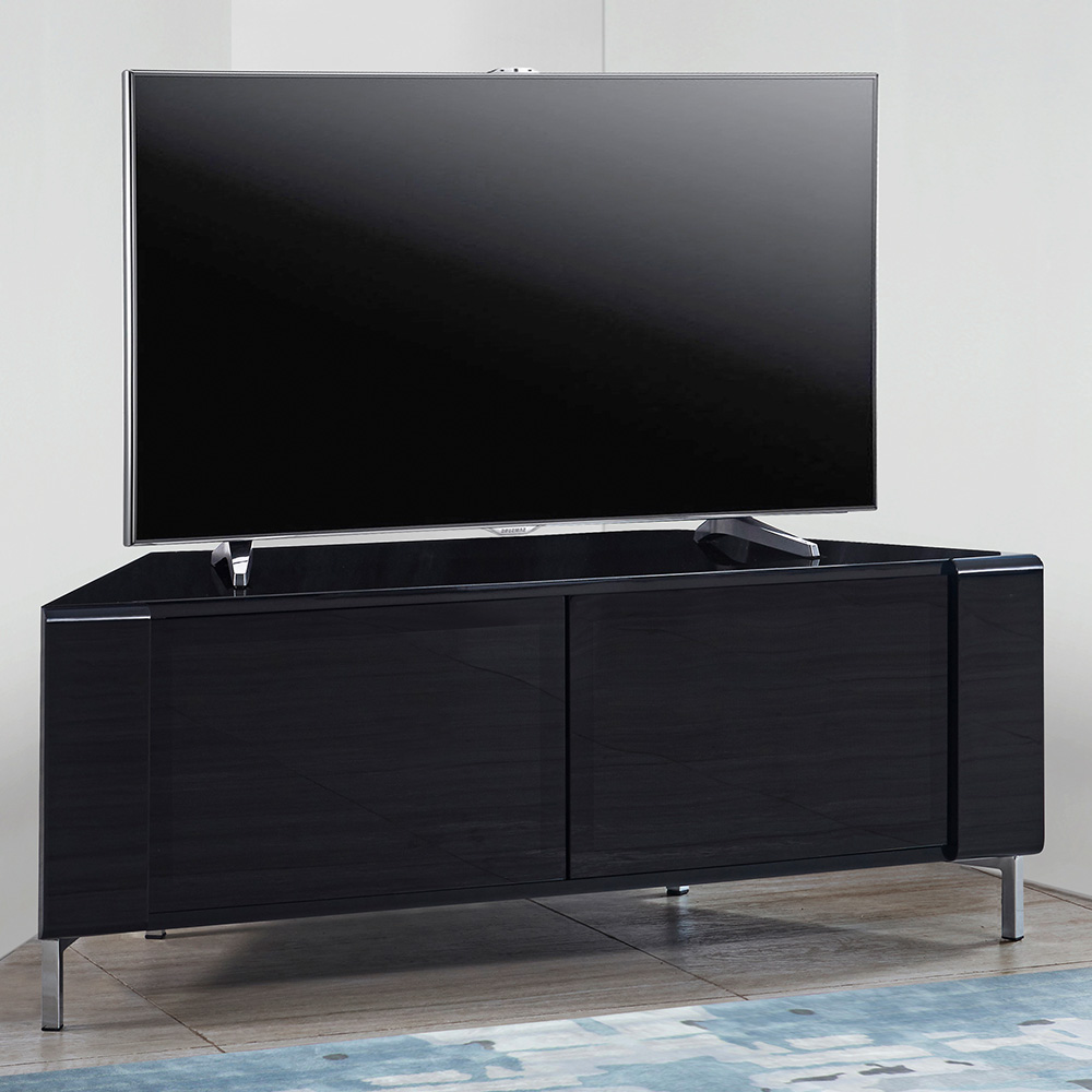 A stylish corner cabinet, the Corvus maximises space with its clever design. Sleek lines and remote-friendly doors, complete with cable management, conceal unsightly wires. Adjustable glass shelving provides ample storage. Finished in high-gloss piano black or white with contrasting chrome legs, it’s the perfect complement to modern living spaces. The innovative BEAMTHRU system allows remote signals to pass through the glass, ensuring easy equipment operation. Simple self-assembly with clear instructions included.