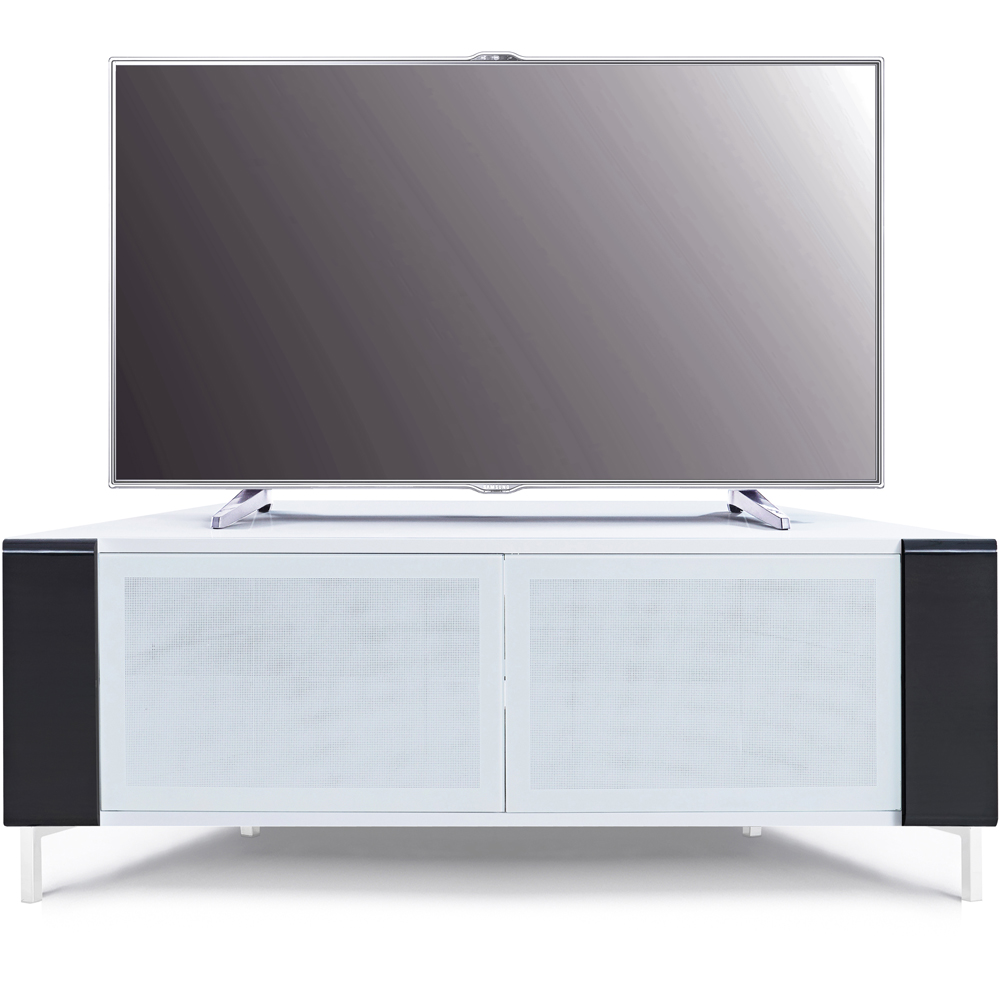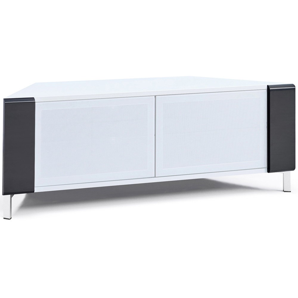 The Corvus is a stylish, space-saving corner cabinet perfect for modern living rooms. Its sleek profile and remote-friendly doors, incorporating the innovative BEAMTHRU system, ensure effortless control of your equipment. Adjustable glass shelving provides ample storage, while the high-gloss piano black/white finish and contrasting chrome legs add a touch of sophistication. Cable management keeps wires neatly concealed, and clear instructions ensure straightforward self-assembly.
