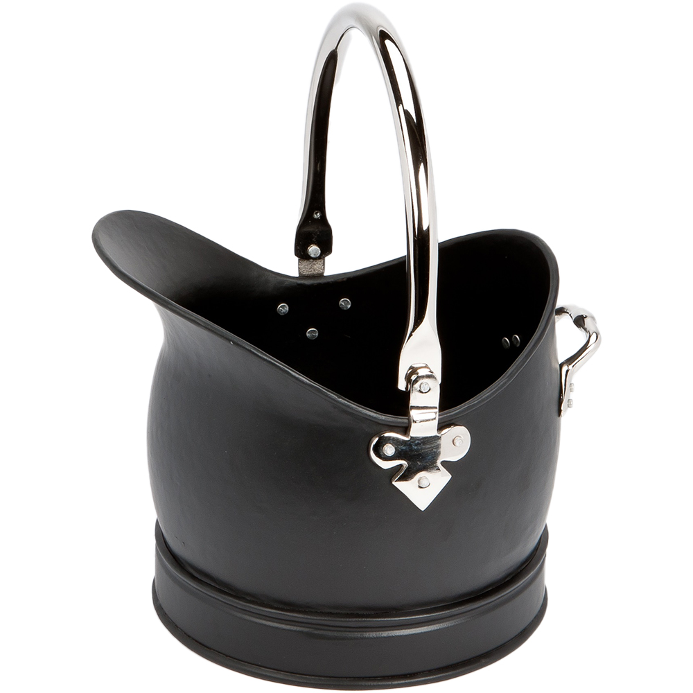 The Inglenook Fireside Black and Nickel Helmet Hod Medium: a stylish coal bucket that',s as durable as it is elegant. Crafted from premium cast iron, its sleek black and nickel finish adds a touch of sophistication to any fireplace. Sturdy handles ensure easy and safe portability, making tending to your fire a breeze.