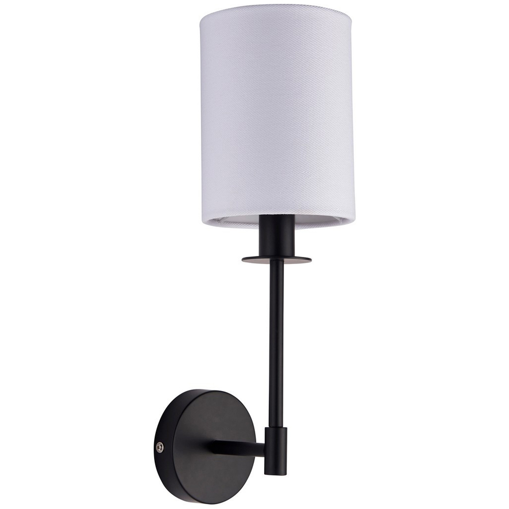 Illuminate your space with the Merano Avellino Matt Black Wall Lamp. Its vintage white cylindrical fabric shade creates a warm, inviting ambiance, perfectly complemented by the classic matt black metalwork. This contemporary wall lamp uses an E14 LED lamp (not included) for beautiful illumination and offers the added convenience of dimming capabilities.