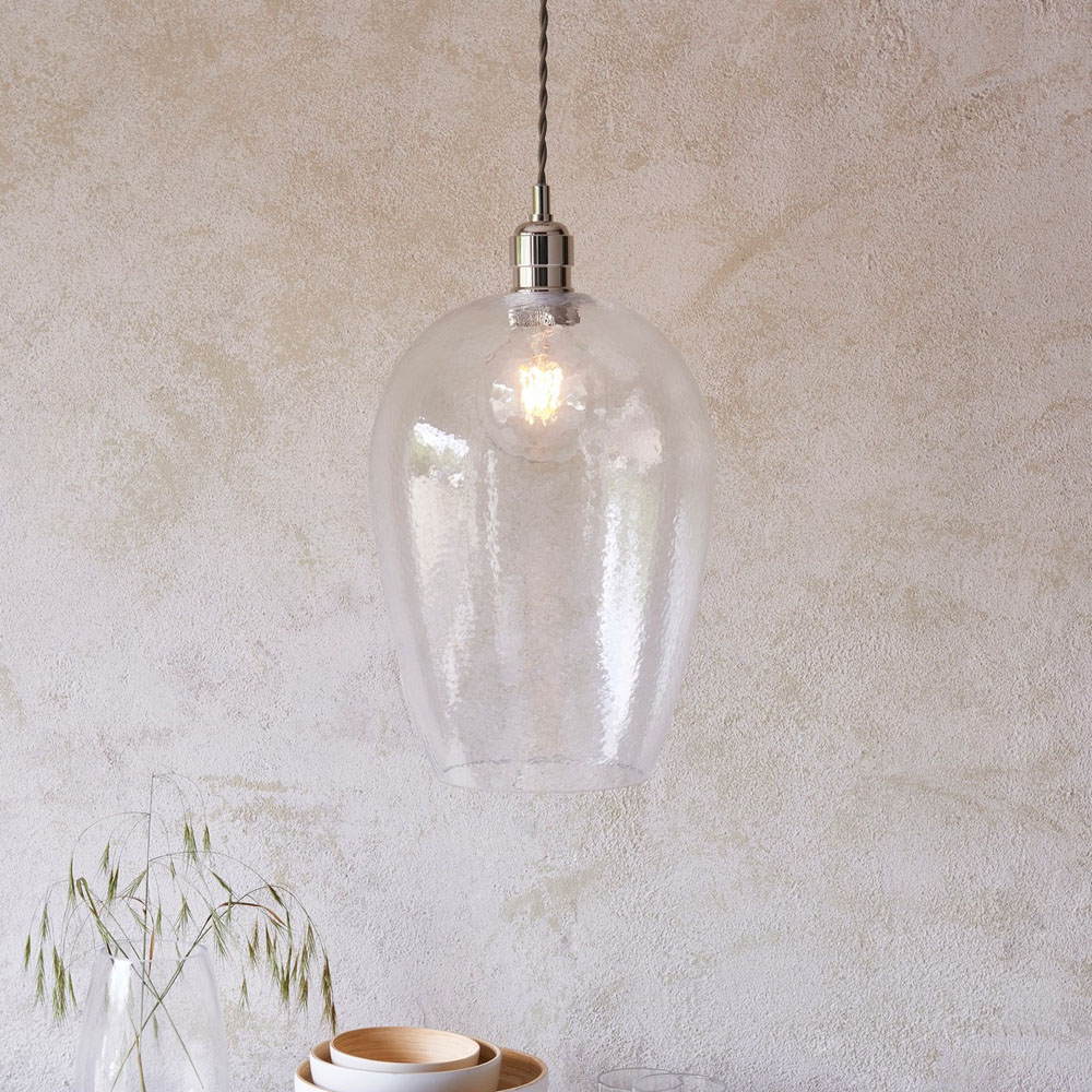 Merano Livorno Hammered Glass Bright Nickel Plate Dome Pendant Ceiling Light